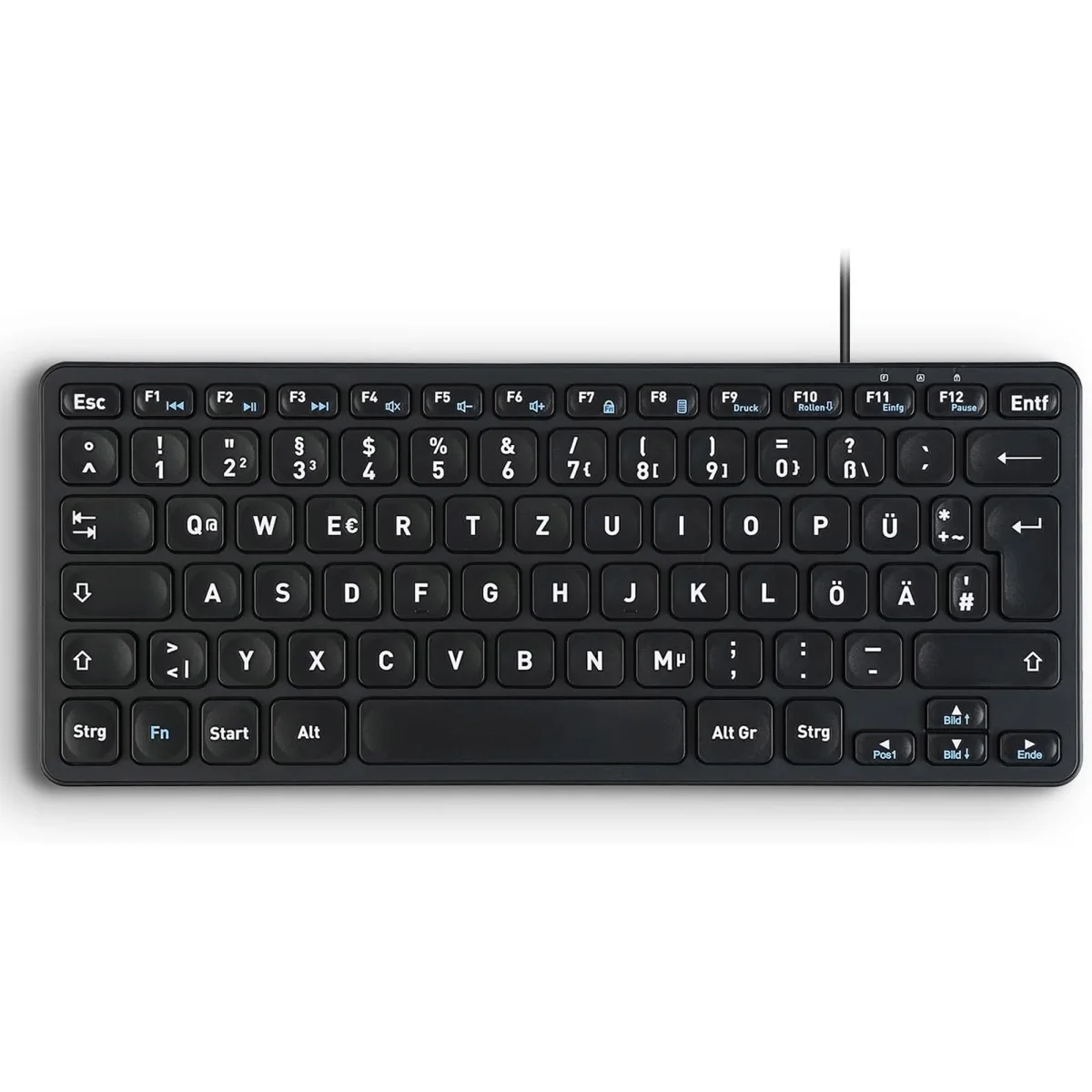 Perixx PERIBOARD-416 DE, kabelgebunden, USB Mini Tastatur mit 4 Hubs, schwarz