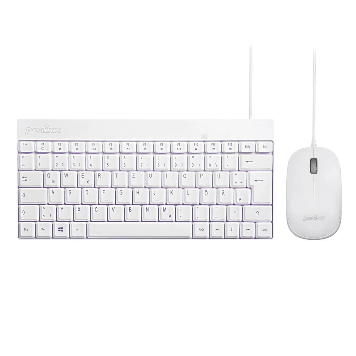 Dieses Tastatur und Maus Set ist ein wahrer Preis-Leistung Sieger in der Fliegengewicht Klasse. Trotz des leichten Gewichts liegt die Tastatur mit Gummi-Anti-Rutsch-Stoppern auf jedem Untergrund gut auf. Dank der hinten angebrachten Füßchen lässt sich die Höhe von flach auf schräg nach Belieben einstellen. Durch die Mini-Größe passt sich die Tastatur auch in platzbegrenzte Arbeitsumgebungen ein. Der Tastendruck ist sanft, angenehm und sehr leise. Die passende optische Maus im Matt-Look mit 1000dpi rundet das Set mit ihrem schlichten Design ab. Tastatur und Maus werden jeweils mit einem 1,80m langen Kabel mit dem PC verbunden. Dies garantiert eine sichere und schnelle Verbindung.