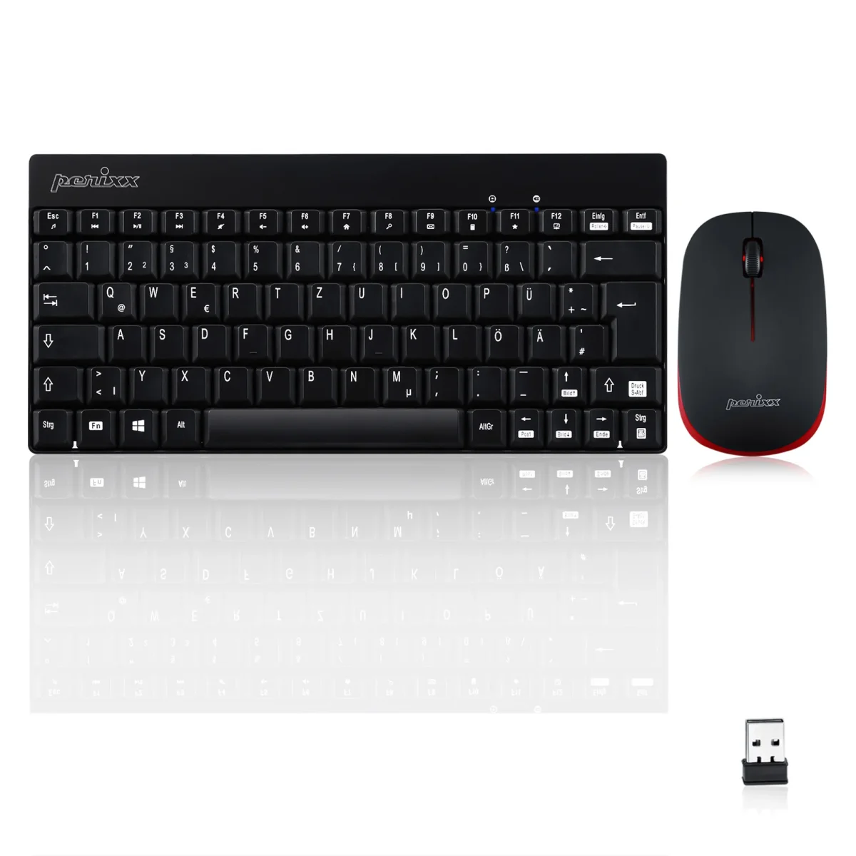 - Platzsparende Tastatur und Maus wireless Combo mit modernem Schwarz / Roten Design