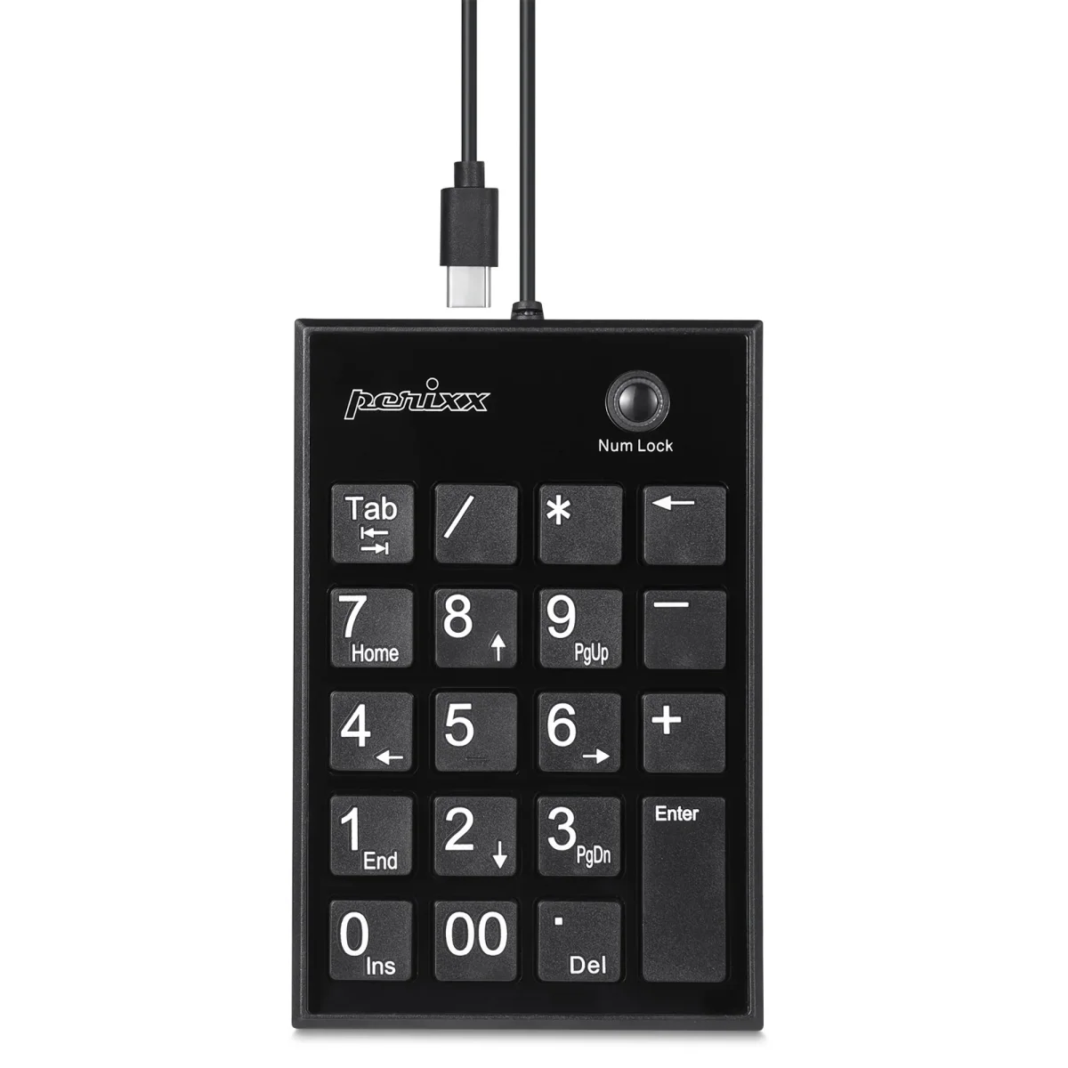 Perixx PERIPAD-202C, USB-C Nummernblock mit 2x USB-A Hub, schwarz