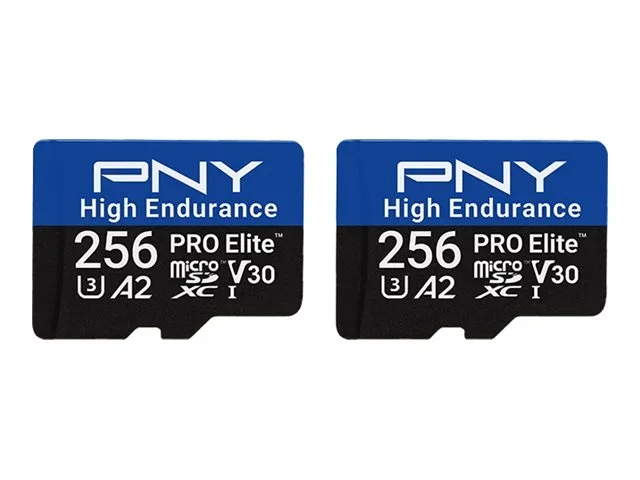 PNY PRO Elite High Endurance - Flash-Speicherkarte (SD-Adapter inbegriffen) - 256 GB - A2 / Video Class V30 / UHS-I U3 / Class10 - microSDXC UHS-I (Packung mit 2)