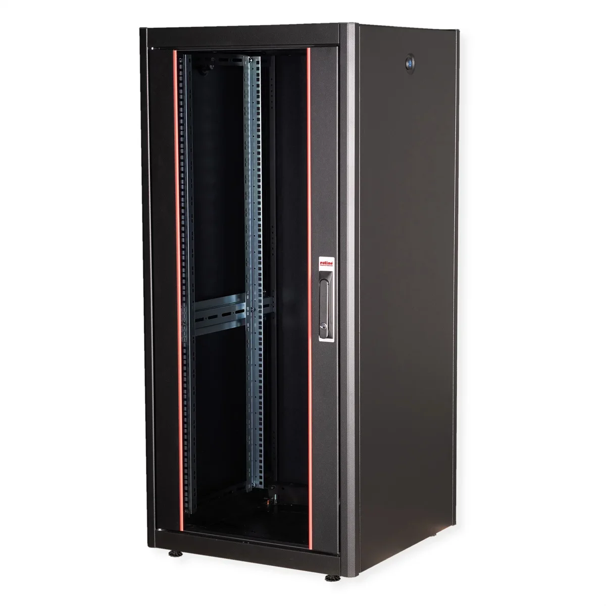 ROLINE 19 Zoll Netzwerkschrank Basic 26 600x600 BxT Glastür schwarz