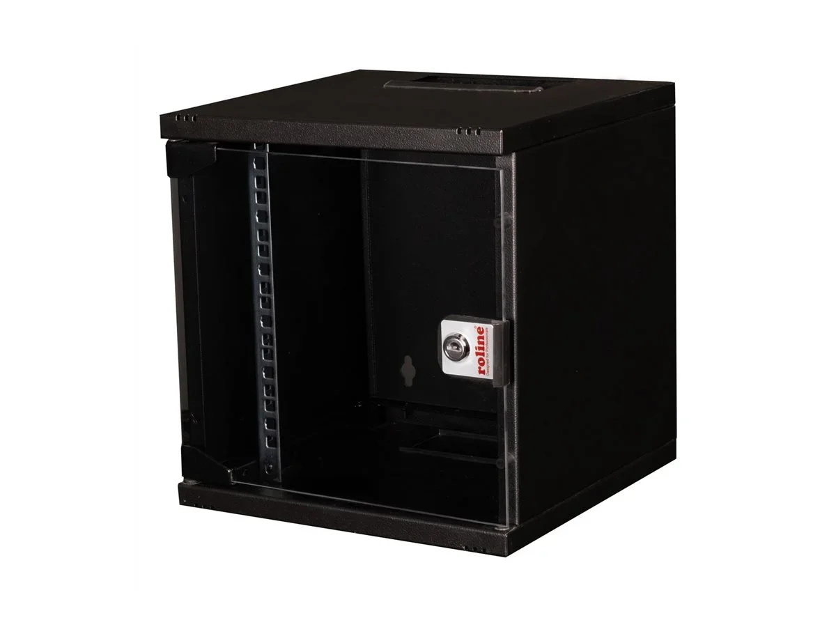 ROLINE 10 Zoll Wandgehäuse 6 HE 312x300 BxT schwarzOb im Privatbereich, im Büro oder in Unterverteilungen mit begrenztem Platzangebot - mit den kompakten 10"-Lösungen können Sie Ihr Netzwerk dort installieren, wo Sie es benötigen. Die Wandgehäuse, die in drei verschiedenen Höheneinheiten (6HE, 9HE, 12HE) erhältlich sind, verfügen über eine Vollglastür und eine Kabeleinführung mit Bürsten im Dach und Boden. Im Inneren sind ein Paar galvanisierte 10"-Profilschienen mit ablesbaren Höheneinheiten verbaut, die sich in der Tiefe verstellen lassen. Jeder Schrank besteht aus einer robusten Stahlkonstruktion aus bis zu 1,5 mm starkem Stahlblech und ist elektrostatisch pulverbeschichtet in den Standardfarben Grau (RAL 7035) und Schwarz (RAL 9005) erhältlich. Ein Wechsel des Türanschlags ist möglich. Darüber hinaus können die Schränke bei Bedarf aufgrund ihrer zerlegbaren Konstruktion vollständig demontiert werden.