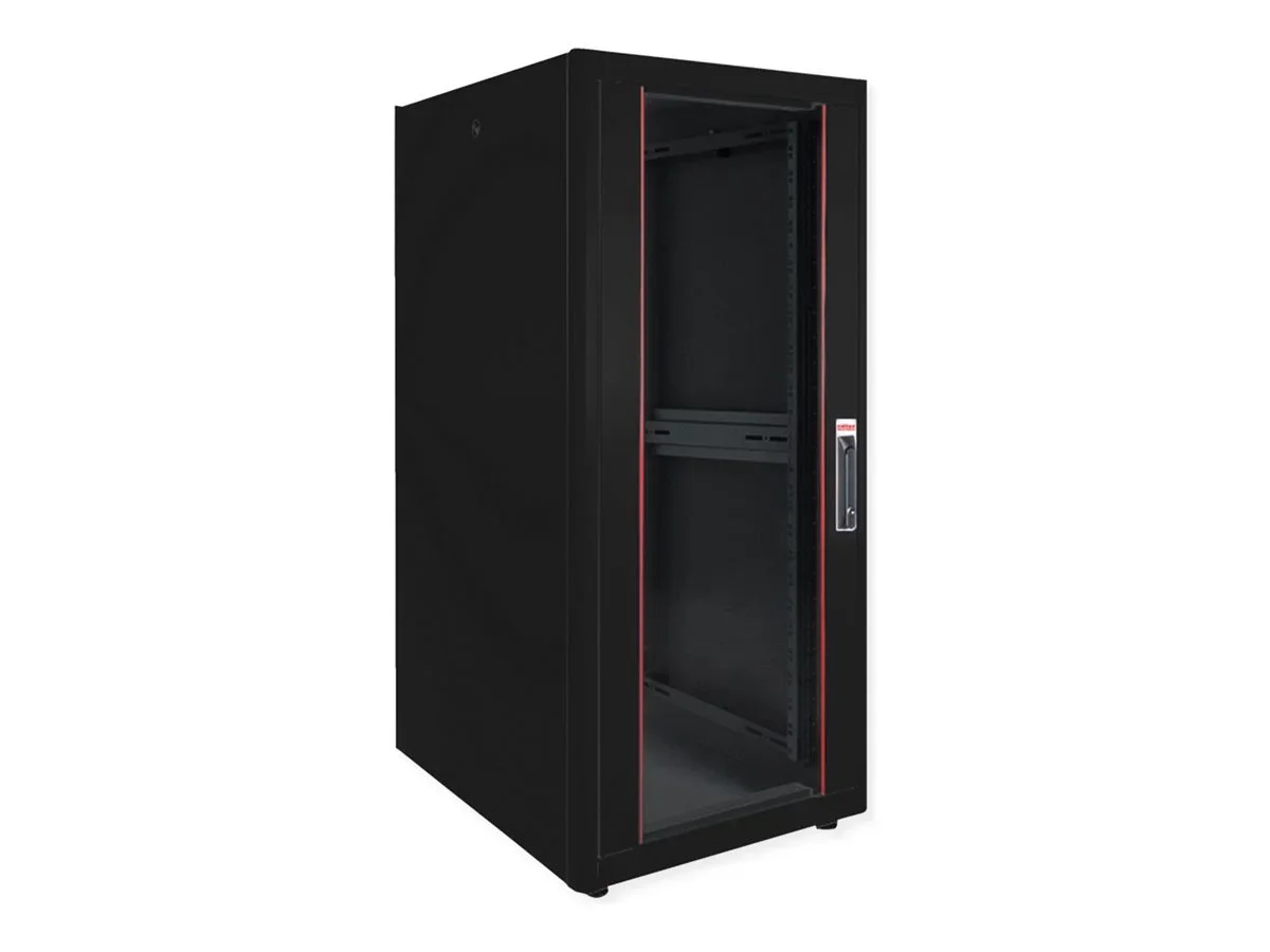 ROLINE Netzwerkschrank Basic 48,26cm 19Zoll 32 HE 600x600 BxT Glastür schwarz