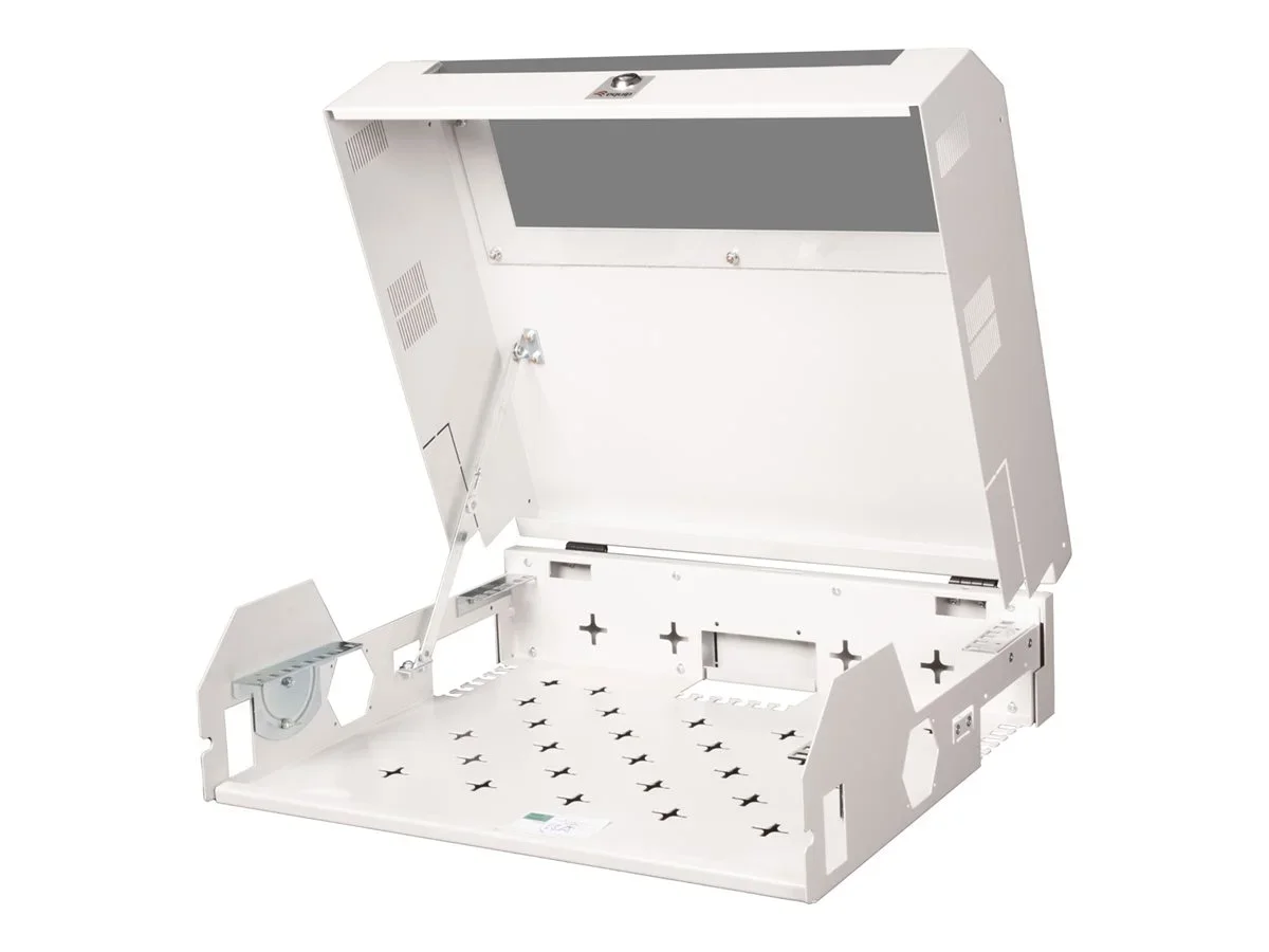 ROLINE 19 Zoll Wandgehäuse Basic 5 HE kurz grauDie Wandgehäuse der ROLINE Basic Serie sind perfekt zur Unterbringung von aktiven und passiven Komponenten geeignet. Sie heben sich durch eine einfache und vor allem zeitsparende Installation von vielen anderen Gehäusen ab. Dank ihres modernen Designs fügen sie sich harmonisch in jedes Büro oder zuhause ein. Das Gehäuse bietet zwei separate Montagemöglichkeiten: An der Vorderseite befindet sich eine rotierbare vertikale 3HE-Schiene, die alternativ auch horizontal oder schräg positioniert werden kann. An der Rückseite ist eine fest angebrachte horizontale 2HE-Schiene, die sich beispielsweise für passive Netzwerkkomponenten eignet. Die ausgestanzten Montagelöcher im gesamten unteren Gehäusebereich ermöglichen zudem die Installation von nicht 19" fähigen Komponenten wie Switche und Routern. Alternativ kann hierfür eine Montageplatte angebracht werden. Traglast: 30 kg Gehäuse kann bis zu 80° geöffnet werden 1-Punkt-Verriegelung Integrierter Türstopper-Mechanismus 19 Zoll Einbaumöglichkeiten: 3HE vertikal (rotierbar), 2HE horizontal (fix) Max. Einbautiefe: 265 mm Vorgestanzte Ausbrüche zur Kabelführung Lüftungsschlitze für passive Be- und Entlüftung Bodenblech mit ausgestanzten Montagelöcher IP Schutzklasse: IP20.