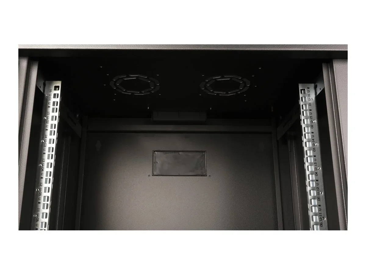 ROLINE 19 Zoll Wandgehäuse Pro 16 HE 600x450 BxT schwarzDie Wandgehäuse der ROLINE Pro Serie wurden speziell für eine flexible Netzwerkverkabelung konzipiert. Jeder Schrank verfügt über einen aufschiebbaren Kabeleinlass im Dach mit Moosgummidichtung. Die Rückwand und das Bodenblech sind mit ausgestanzten Kabeleinlässen und Kunststoffabdeckungen ausgestattet. Das Dachchassis bietet einen ausgestanzten Bereich zur Aufnahme eines Lüftermoduls. Im Inneren sind ein Paar galvanisierte Profilschienen mit Höheneinheiten von 483 mm (19") verbaut, die zusätzlich in der Tiefe verstellbar sind. Die robusten Stahlkonstruktionen der Schränke bestehen aus bis zu 1,5 mm starkem Stahlblech und sind in Grau (RAL 7035) oder Schwarz (RAL 9005) pulverbeschichtet erhältlich. Die Seitenwände und die Fronttür sind modular abschließ- und abnehmbar, was die Zugänglichkeit verbessert. Die Wandmontage erfolgt in zwei einfachen Schritten: Zuerst wird die Rückwand an die Wand geschraubt und dann mit dem Gehäuse verbunden. Optional können Nivellierfüße oder Rollen verwendet werden, um die Schränke freistehend zu nutzen. Traglast: 100 kg Fronttür aus gehärtetem Glas, abschließbar 1-Punkt-Verriegelung an der Fronttür Seitenteile sind abschließ- und abnehmbar Kabelzuführung an Rückseite und Boden Dach mit Austanzung für Lüftermodule Lüftungsschlitze für passive Be- und Entlüftung Inkl. Befestigungsmaterial IP Schutzklasse: IP20.