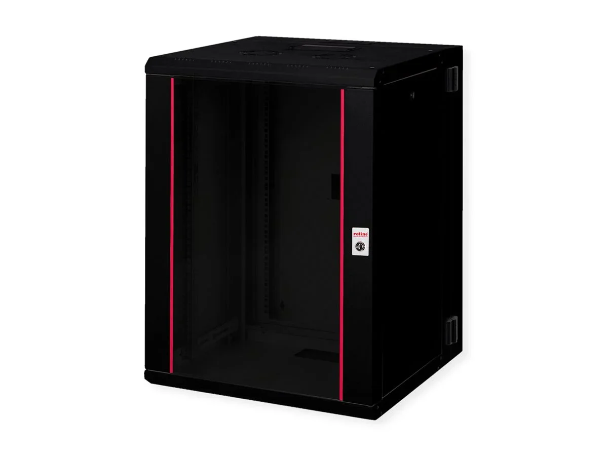 ROLINE 19 Zoll Wandgehäuse Pro 16 HE 600x600 BxT zweiteilig schwenkbar schwarzDie Wandgehäuse der ROLINE Pro Serie wurden speziell für eine flexible Netzwerkverkabelung konzipiert. Durch das integrierte Scharnier im rückseitigen Rahmen lässt sich das Gehäuse bei Bedarf zur Seite klappen. Jeder Schrank verfügt im Dach über einen verschiebbaren Kabeleinlass mit Moosgummidichtung. Rückwand und Boden sind mit ausgestanzten Kabeleinlässen und Kunststoffabdeckungen versehen. Der rückseitige Rahmen ist oben und unten mit Bürstenleisten ausgestattet. Zur Installation eines Lüftermoduls ist das Dachchassis bereits mit einem passenden Ausschnitt versehen. Im Inneren befinden sich galvanisierte 19"-Profilschienen, die in beide Richtungen ablesbar und in der Tiefe verstellbar sind. Der rückseitige Rahmen hat zusätzlich eine 19"-Lochung. Jeder Schrank besteht aus einer robusten Stahlkonstruktion aus bis zu 1,5 mm starkem Stahlblech und ist in den Standardfarben Grau (RAL 7035) und Schwarz (RAL 9005) elektrostatisch pulverbeschichtet. Modular abschließbare und abnehmbare Seitenwände sowie eine abschließbare und abnehmbare Fronttür verbessern die Zugänglichkeit. Der Türanschlag kann gewechselt werden. Die Wandmontage erfolgt in zwei einfachen Schritten: Der Rahmen des Gehäuses wird in der gewünschten Öffnungsrichtung an die Wand montiert und anschließend mit dem Gehäuse verbunden. Optional können die Wandgehäuse der ROLINE Pro Serie mit Nivellierfüßen oder Rollen auch freistehend genutzt werden. Fronttür aus gehärtetem Glas, abschließbar 1-Punkt-Verriegelung an der Fronttür Gehäuse ist mit rückseitigem Rahmen durch separates Schloss verbunden Kabelzuführung an Rückseite und Boden Seitenteile sind abschließ- und abnehmbar Dach mit Austanzung für Lüftermodule Lüftungsschlitze für passive Be- und Entlüftung Inkl. Befestigungsmaterial IP Schutzklasse: IP20.