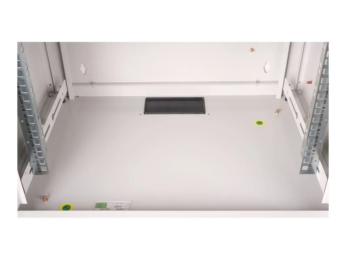 ROLINE 19 Zoll Wandgehäuse Pro 7 HE 600x450 BxT grauDie Wandgehäuse der ROLINE Pro Serie wurden speziell für eine flexible Netzwerkverkabelung konzipiert. Jeder Schrank verfügt über einen aufschiebbaren Kabeleinlass im Dach mit Moosgummidichtung. Die Rückwand und das Bodenblech sind mit ausgestanzten Kabeleinlässen und Kunststoffabdeckungen ausgestattet. Das Dachchassis bietet einen ausgestanzten Bereich zur Aufnahme eines Lüftermoduls. Im Inneren sind ein Paar galvanisierte Profilschienen mit Höheneinheiten von 483 mm (19") verbaut, die zusätzlich in der Tiefe verstellbar sind. Die robusten Stahlkonstruktionen der Schränke bestehen aus bis zu 1,5 mm starkem Stahlblech und sind in Grau (RAL 7035) oder Schwarz (RAL 9005) pulverbeschichtet erhältlich. Die Seitenwände und die Fronttür sind modular abschließ- und abnehmbar, was die Zugänglichkeit verbessert. Die Wandmontage erfolgt in zwei einfachen Schritten: Zuerst wird die Rückwand an die Wand geschraubt und dann mit dem Gehäuse verbunden. Optional können Nivellierfüße oder Rollen verwendet werden, um die Schränke freistehend zu nutzen. Traglast: 100 kg Fronttür aus gehärtetem Glas, abschließbar 1-Punkt-Verriegelung an der Fronttür Seitenteile sind abschließ- und abnehmbar Kabelzuführung an Rückseite und Boden Dach mit Austanzung für Lüftermodule Lüftungsschlitze für passive Be- und Entlüftung Inkl. Befestigungsmaterial IP Schutzklasse: IP20.
