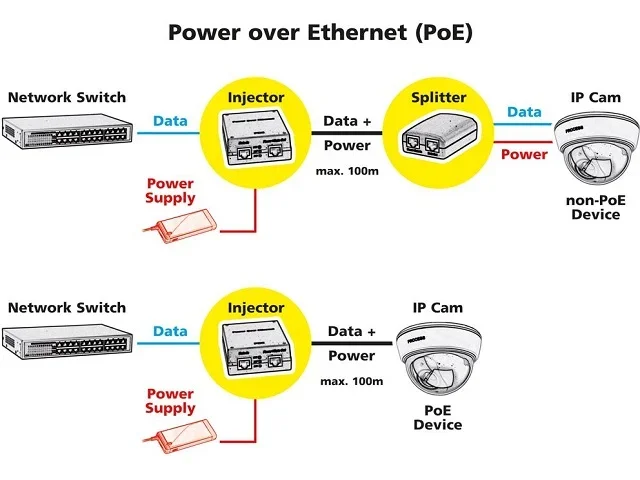 Der ROLINE Gigabit PoE Injektor ist ein sogenanntes PSE, ein Gerät zur Stromversorgung für z.B. Überwachungskameras und LAN-Geräte wie Access Points, Bridges und Router über Ethernet-Kabel. Ein PSE speist Strom zu den Daten in das Netzwerkkabel ein. Es muss dann kein eigenes Netzteil mehr an dem LAN-Gerät angeschlossen werden. Einspeisung von Daten und Strom ins Netzwerkkabel Unterstützt Gigabit Ethernet (10/100/1000) Anschlüsse: 1x RJ-45 Port (Eingang Daten), 1x Kaltgeräte-Buchse (Eingang Stromversorgung), 1x RJ-45 Port (Ausgang Daten und Strom) Kompatibel zu 802.3at und 802.3af Leistung über PoE: bis zu 30W LED-Anzeigen für Power, Link/Act. und PoE Ausgangsspannung: 46V - 52V DC Abmessungen (L x B x H): 165 x 62 x 38,5 mm.