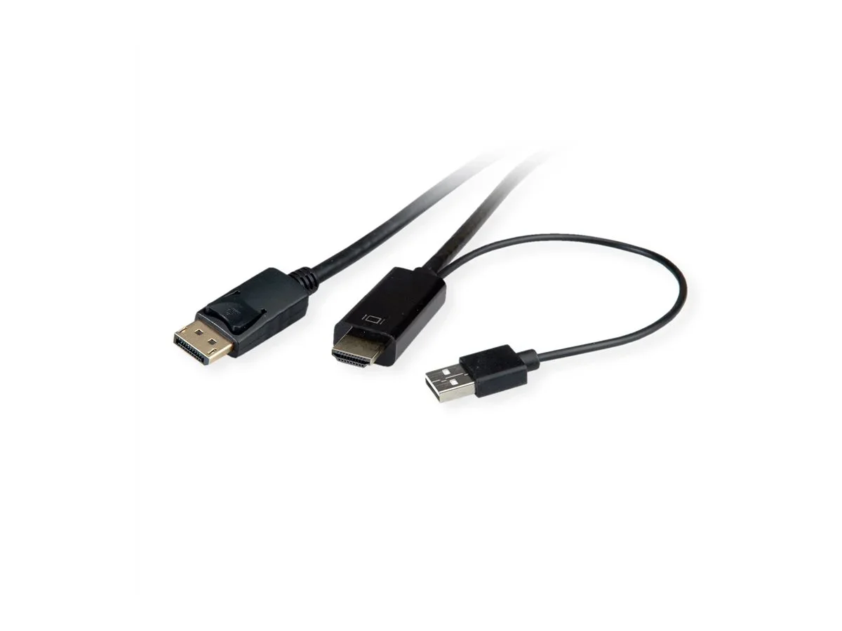 UHDTV nach DisplayPort Kabel zum Übertragen von Inhalten von beispielsweise Ihrer Grafikkarte (HDMI) auf Ihren Monitor (DP) - mit einer Qualität von bis zu 3840x2160 @60Hz, inkl. Audio-Übertragung! HDTV (HDMI) ist der Standard für die digitale Video-Übertragung im TV-/Multimedia-Bereich für z.B. Anbindung eines Gerätes mit HDMI-Schnittstelle an einen Monitor mit DisplayPort-Anschluss Kabel mit einem UHDTV- und einem DisplayPort Stecker Hinweis: Ein UHDTV-DisplayPort-Kabel ist nur in einer Richtung verwendbar: Der HDMI Port-Stecker ist nur auf der Datenquellenseite verwendbar (z.B. Grafikkarte)ROLINE HDMI Kabel mit Displayport Stecker zum Verbinden eines Laptops, PCs, Monitors oder einer Grafikkarte mit einem TV, Beamer oder Projektor (DP Anschluss) - Bildschirmübertragungen in hochauflösender 4K Qualität.Die Kabel der Marke ROLINE zeichnen sich durch hochwertige Materialqualität, solide Verarbeitung und passgenau gefertigte Steckkontakte aus. Der robuste und trotzdem flexible Kabelmantel aus PVC in mattschwarz schützt effektiv vor Beschädigungen und möglichen Kabelbrüchen. Die Steckkontakte in gold sorgen für Kontaktsicherheit, flüssige Bild- sowie Audioübertragungen und höchste Stabilität bei häufigem Ein- und Ausstecken des Kabels. Das Verbindungskabel garantiert eine qualitativ hochwertige Bild- und Tonwiedergabe auf dem Anzeigegerät in hoher Auflösung.