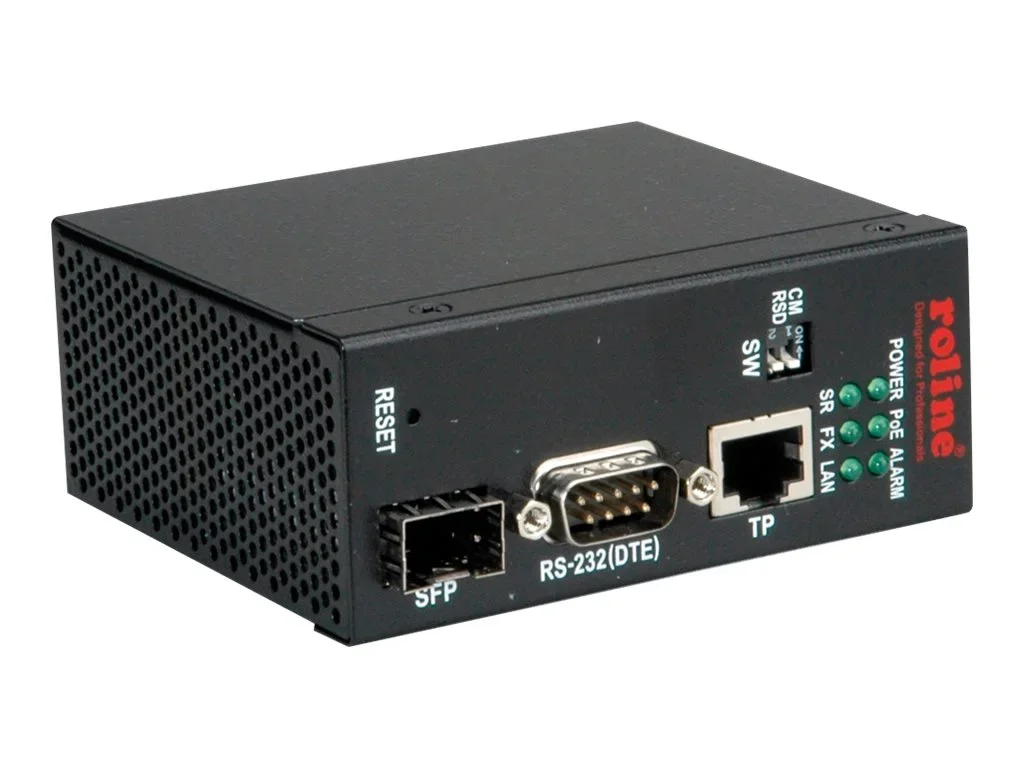 Netzwerk-Medien-Konverter von Ethernet (RJ-45 und zusätzlich SFP-Port) nach seriell (RS-232), für den Einsatz in Industrieumgebungen! Ethernet-Anschluss als Combo-Port RJ-45 oder 100Mbit/s SFP-Slot Serielle Schnittstelle RS-232 Baud-Rate bis 230400 bit/s Optische Isolierung an der seriellen Schnittstelle DIN Hutschienenmontage Betriebsspannung: +8 bis +60VDC Unterstützt PoE über RJ-45 Alarm-Ausgang für Stromversorgung, Link-Fehler und Fehler der Server-Anbindung Anwendungsunterstützung für Remote COM-Port, Serial Server over TCP, Eeverse Telnet, Paar-Verbindung und Serial Broadcast Remote COM Driver für Windows Konfiguration web-basiert oder über Konsole.