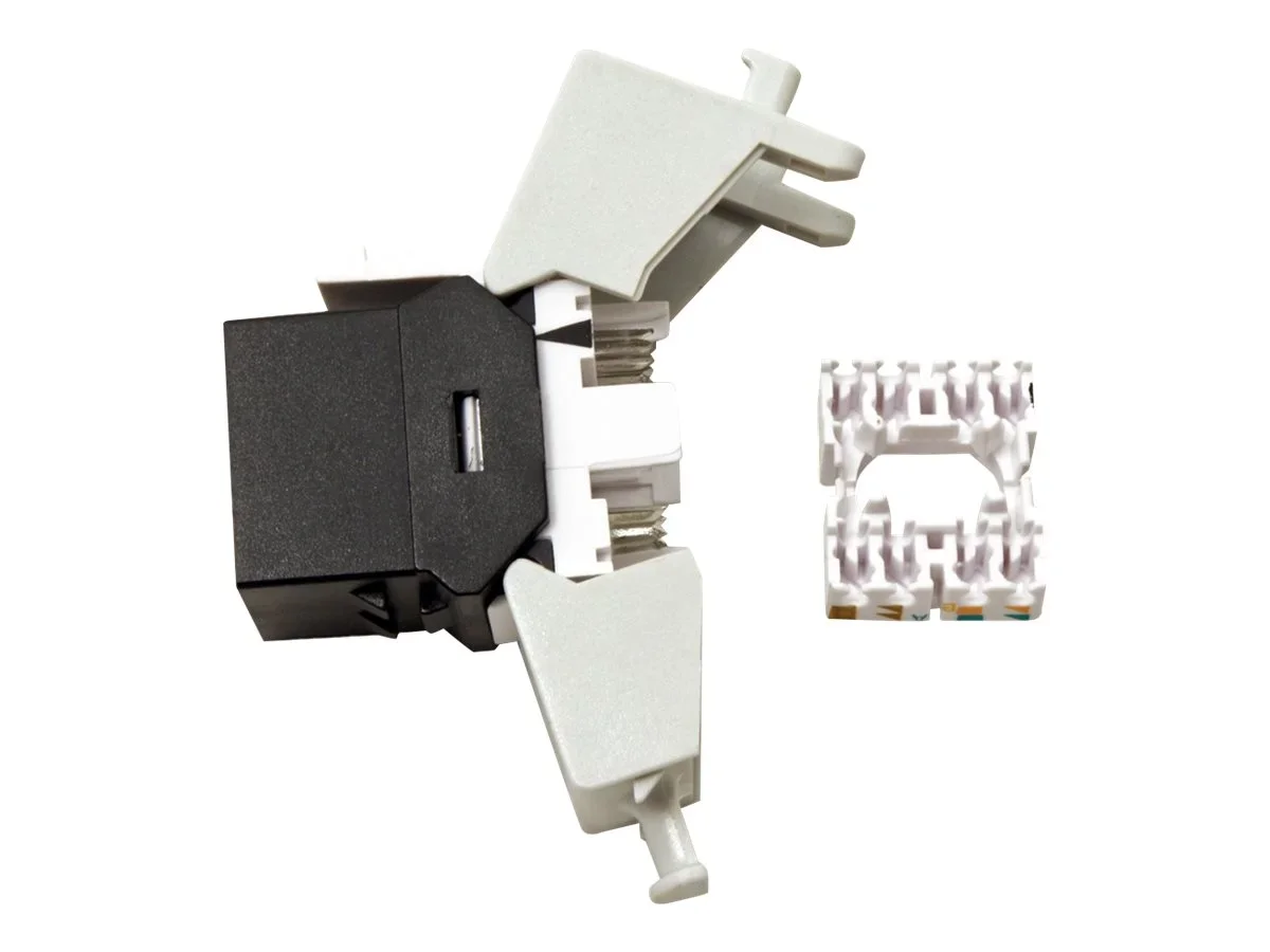 ROLINE Keystone in Kat.6 Qualität für den Einsatz in Gigabit Ethernet Netzwerken - jetzt in besonders schmaler Bauform Anschluss der Kabel an die Keystones erfolgt werkzeuglos - die Kabeladern werden einfach in die Führungen gelegt, das Modul wird geschlosssen und zusammengedrückt - fertig ist der Anschluss Keystones mit aufgedruckter Farbcodierung gemäß EIA / TIA 568 Die Keystone-Module können in einen 19"-Modulträger (26.11.0357 in schwarz, alternativ auch 26.11.0356 in lichtgrau) eingeklinkt werden. Oder sie werden zusammen mit einer Modulaufnahme 25.16.8579 zur Anschlussdose. Die ROLINE Kat.6/Class E 19"-Keystones genügen den übertragungstechnischen Eigenschaften eines Kat.6/Class E Links Wir empfehlen für den Aufbau einer strukturierten Verkabelung folgende Komponenten zu verwenden:ROLINE UTP Kat.6/Class E Massivdraht Installationskabel (Best.-Nr.- 21.15.0990), ROLINE Kat.6/Class E Anschlussdosen (Best.-Nr. 25.16.8494), ROLINE Kat.6/Class E 19"-Keystone-Patchpanel (Best.-Nr. 26.11.0357 und 26.11.0375), und ROLINE UTP Patchkabel mit RJ45 Steckern (Best.-Nr. 21.15.0935). Diese Produktkombination wurde in unserem hauseigenen Prüflabor nach Klasse E im Channel von 100m gemessen.