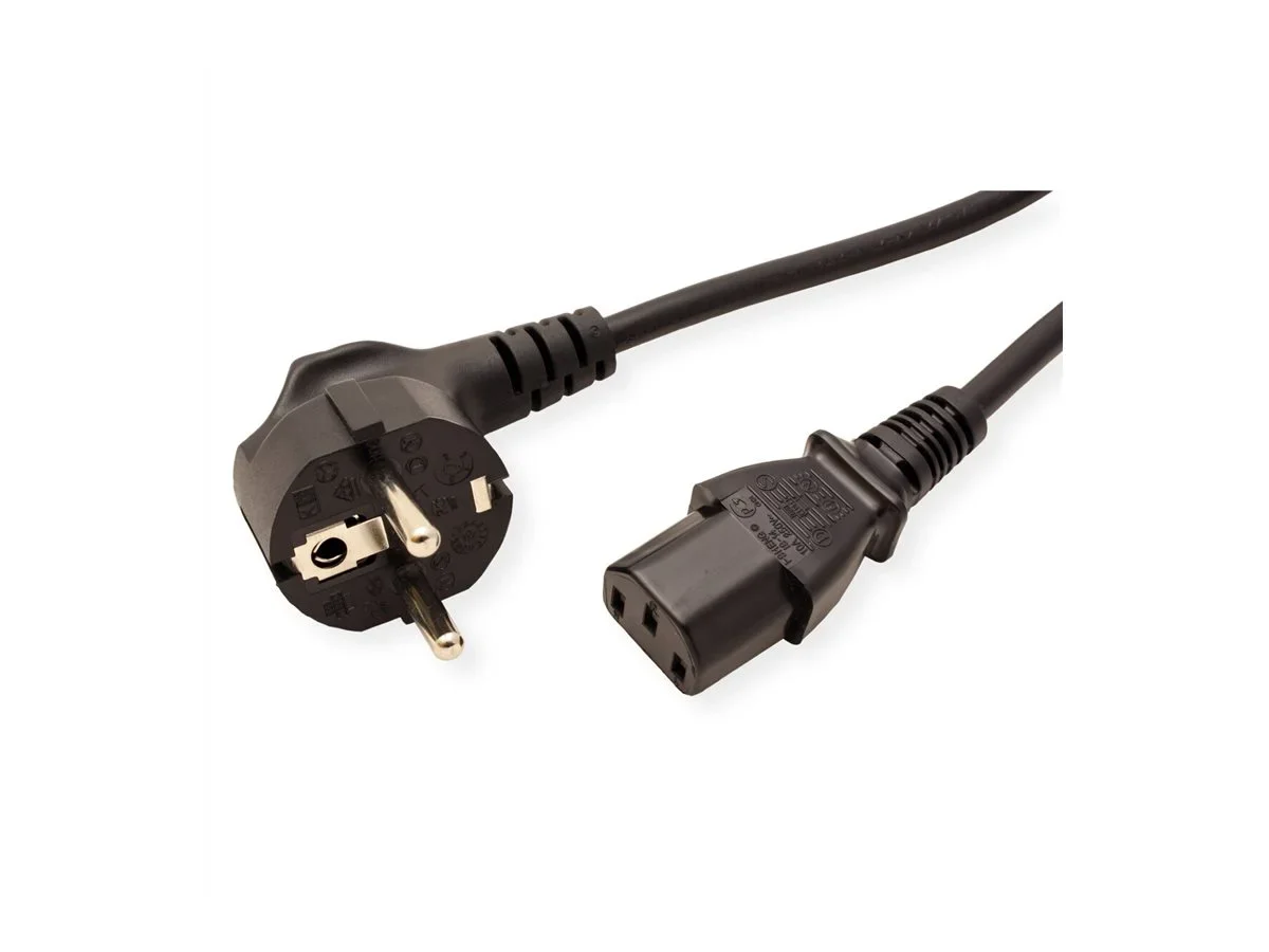 Roline - Stromkabel - power IEC 60320 C13 gerade zu power CEE 7/7 (M) gewinkelt - Wechselstrom 250 V - 10 A - 3 m - Schwarz