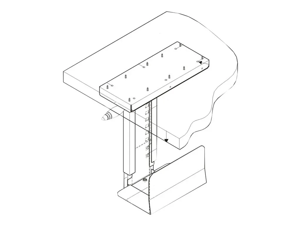 Stabiler PC Halter zur Untertischmontage für mehr Platz auf Ihrem Arbeitstisch Platzsparender PC Halter, schafft mehr Platz auf Ihrem Arbeitstisch Stabile Stahlkonstruktion Befestigung unter der Tischplatte, Schrauben nicht im Lieferumfang enthalten Höhe und Breite einstellbar.