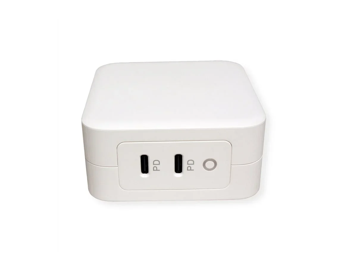 USB Ladegerät mit Euro-Flachstecker und 2x USB-C Ports mit maximal 100 W zum Aufladen bzw. für die Spannungsversorgung zweier Geräte gleichzeitig. Für zum Beispiel Smartphone, Tablet, externes HD-Gehäuse und andere Geräte. Power Adapter mit zwei USB Buchsen (2x USB-C) Einfache Handhabung zu Hause oder unterwegs Unterstützt Typ C (PD) Power Delivery Steckernetzteil mit zwei USB Ausgängen: zwei USB Typ C Buchsen (für PD) Eingangsspannung: 100 - 240V AC, 50 - 60Hz Ausgangsspannung Typ C (PD): DC 5V / 3A, 9V / 3A, 12V / 3A / 15V / 3A / 20V / 5A (bei ein Port Ladevorgang) 20V / 2,25 A (zwei Port Ladevorgang) Ausgangsleistung: max. 100WVorteile der GaN Technologie GaN oder Galliumnitrid - kristallartiges Material mit vorteilhafteren Eigenschaften im Vergleich zu Silizium Leistungsstarke, effiziente Stromversorgung Ermöglicht ein kompakteres Design der Ladegeräte Geringe Wärmeentwicklung Höhere Dichte von elektronischen Komponenten möglich.