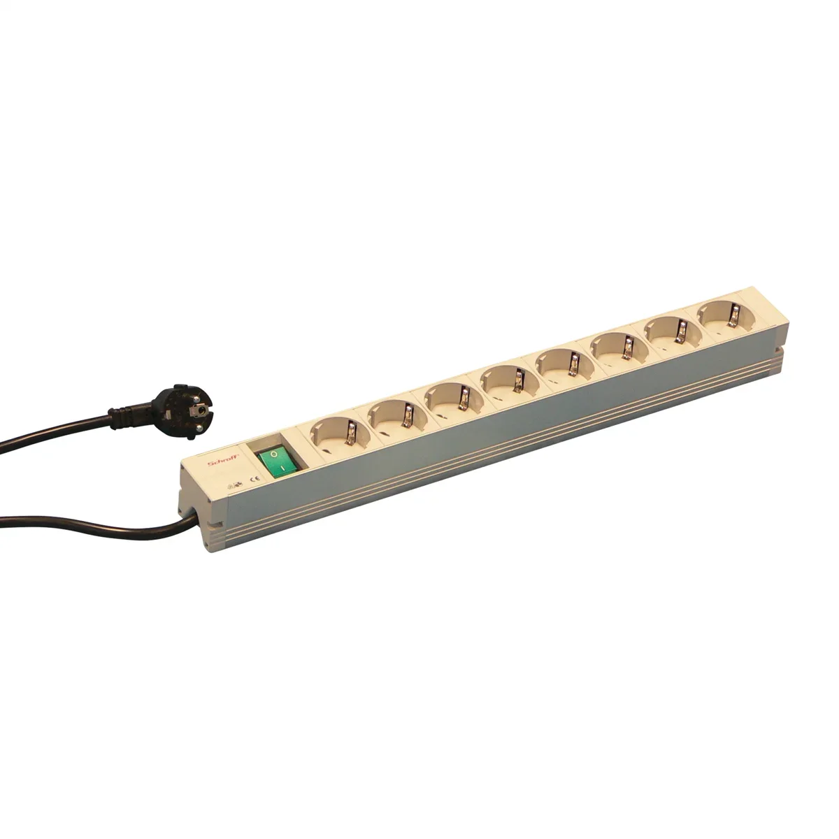 SCHROFF 19"-Leiste mit Wippschalter, 8x Schutzkontakt, Deutschland