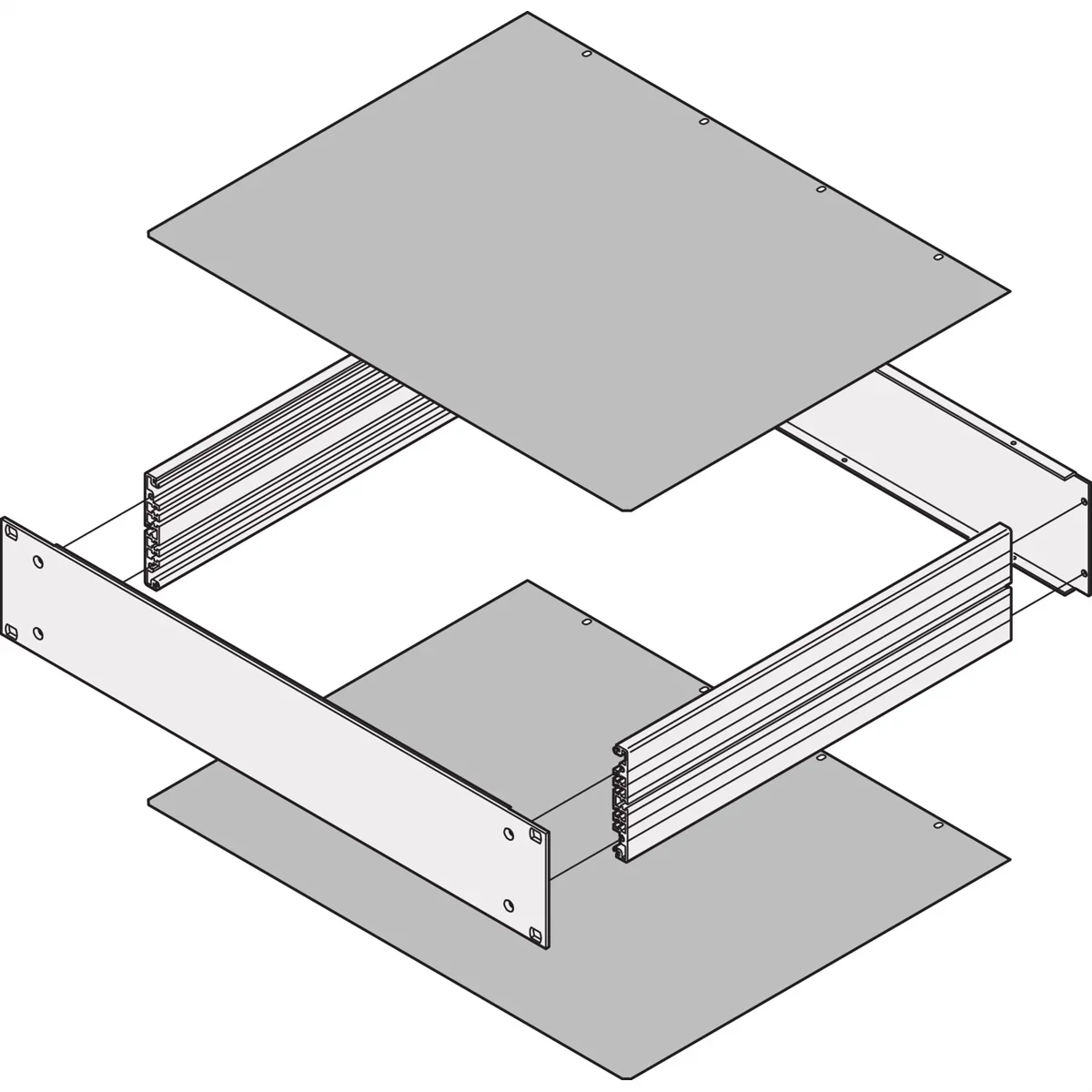 Abdeckbleche können als Deck- oder Bodenbleche eingesetzt werden; wir in den Grundbausatz eingeschoben - Abdeckblech geschlossen