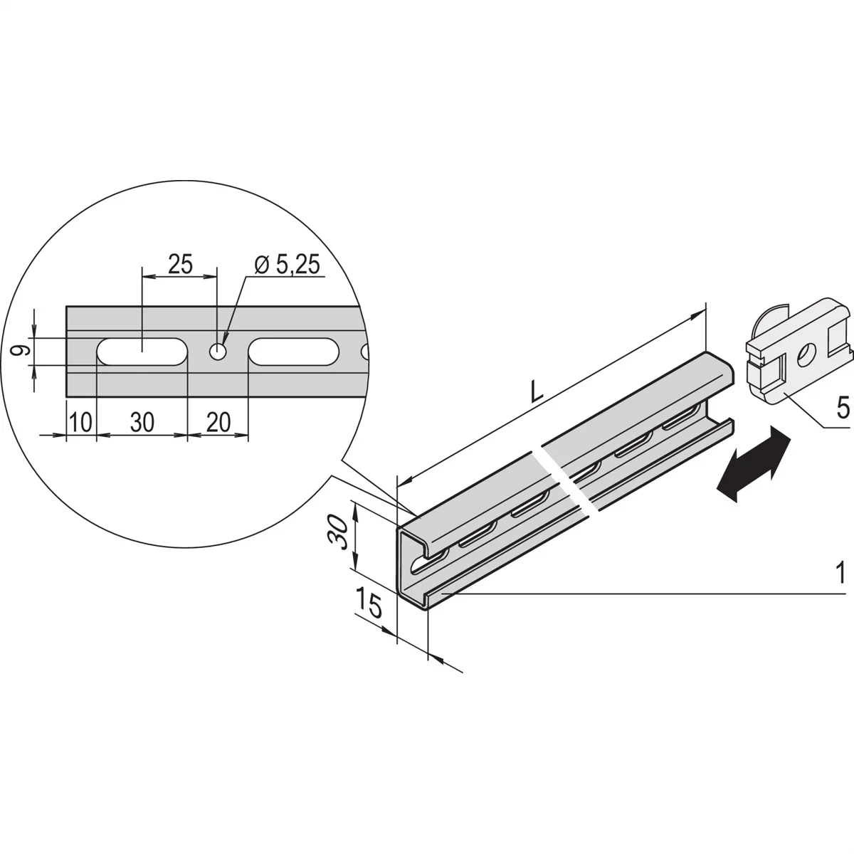 | Pos.1 (4x): | C-Profil, St, 1,5 mm, Oberfläche AlZn |