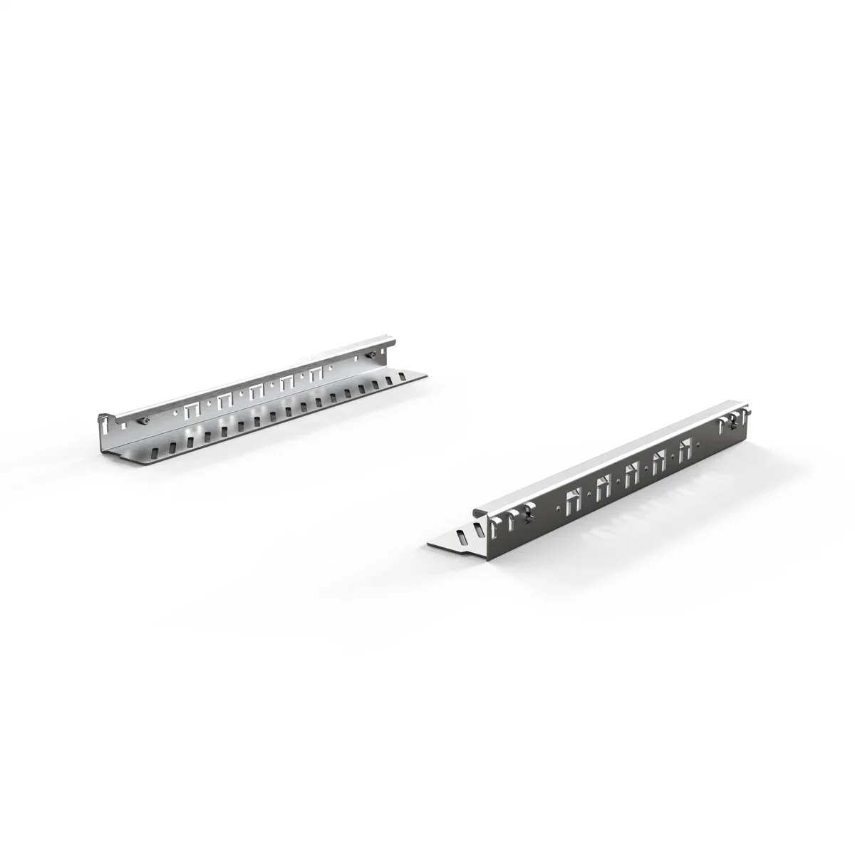 Zur Montage an 19"-Winkelprofilen - In 1 HE Schritten montierbar (einhängen, anschrauben) - Breite Auflagefläche (48 mm) - Zwei Ausführungen: Statische Traglast 25 kg/Paar oder 100 kg/Paar
