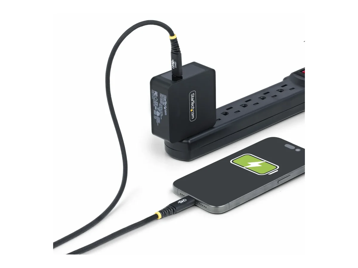 Mit einer Ausgangsleistung von bis zu 5A unterstützt das USB-C-Ladekabel bis zu 240W Power Delivery zum Aufladen eines USB-C-Laptops oder zum Schnellladen eines Tablets oder Smartphones. Verbinden Sie das Kabel von einem USB-C-Laptop mit einem USB-C-Wandladegerät.