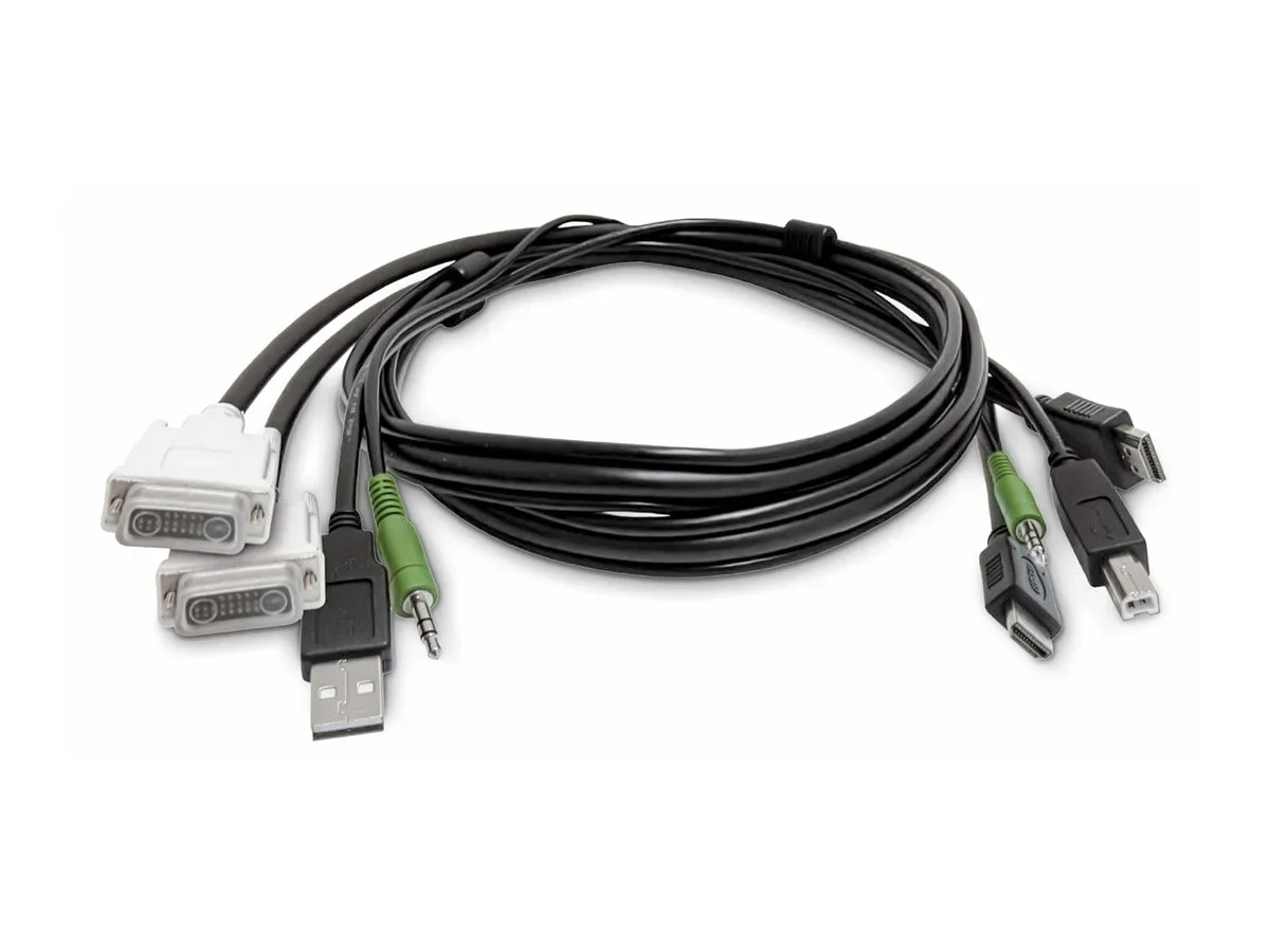 Dieses 1,8m KVM-Kabel bietet eine zuverlässige Verbindung zwischen einem Dual-DVI Computer und einem Dual-HDMI KVM-Switch mit USB 2.0 und 3,5mm Audio Unterstützung.