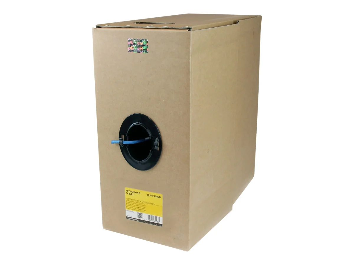Die 304,8 m lange Rolle Cat6-Riser-Kabel WIR6CMRBL (blau) entspricht oder übertrifft alle Cat6 Spezifikationen, um zuverlässige Gigabit-Netzwerkverbindungen zu gewährleisten. Die Ummantelung ist mit Angaben zur verbleibenden Länge in Fuß markiert, sodass leicht erkennbar ist, wie viel Kabel auf der Rolle verbleibt und Sie die Kabellänge gemäß Ihren Installationsanforderungen zuschneiden können.