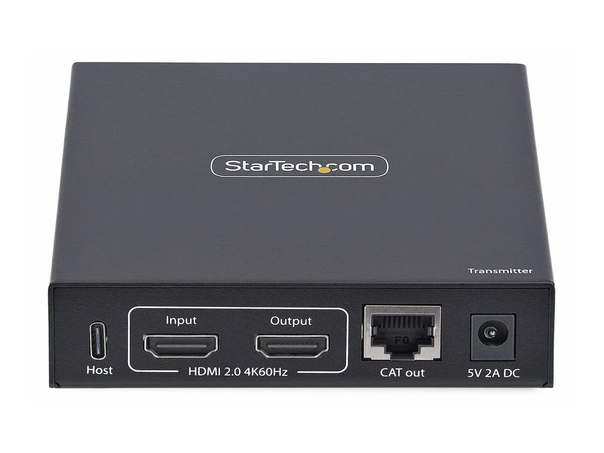 Der Transmitter verfügt über ein robustes Metallgehäuse mit Montagesatz für die Wand- oder Untertischinstallation sowie Gummifüße für die Stabilität auf dem Schreibtisch. Ein lokaler HDMI-Ausgang ermöglicht den direkten Anschluss an einen Bildschirm in der Nähe, während RS232- und 3,5mm Audio-Passthrough-Anschlüsse eine nahtlose serielle und Audio-Erweiterung ermöglichen.