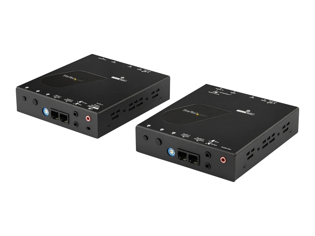 Dieses HDMI-over-IP-Extender-Set überträgt Videos über Ihr lokales Netzwerk (LAN) und Cat5- oder Cat6-Netzwerkkabel an Remote-Standorte. Durch die Kombination dieses Kits mit [%product id="ST12MHDLAN2R" text="Zusätzliche Empfänger"%] (separat erhältlich) und einem Ethernet-Switch (separat erhältlich) können Sie eine HDMI-Quelle an mehrere Standorte übertragen und Videowände mit mehreren Remote-Monitoren und -Empfängern am selben Standort erstellen.