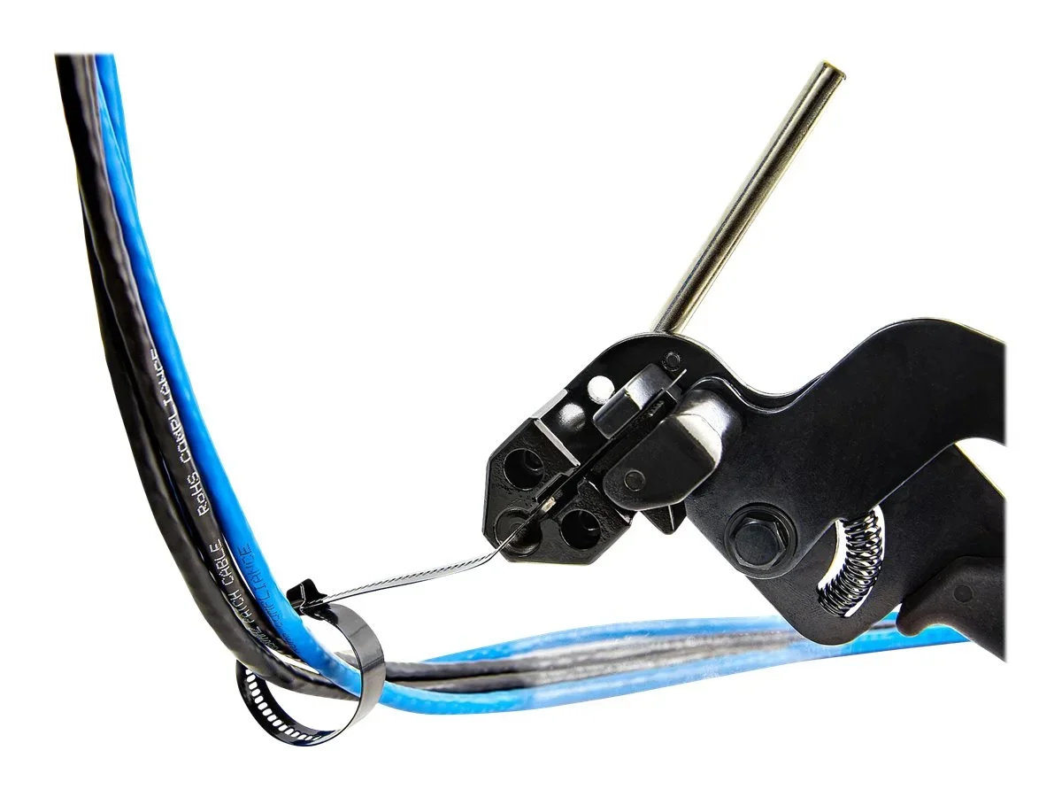 Diese Edelstahl-Kabelbinder können leicht von Hand installiert werden. Um jedoch den Zeitaufwand und die wiederholte Belastung Ihrer Hände bei der Installation vieler Kabelbinder zu reduzieren, bietet StarTech.com auch ein Metallkabelbinder-Werkzeug (CBMMCTTOOL) an, das sowohl mit unseren Kabelbindern als auch mit anderen Metallkabelbindern funktioniert (separat erhältlich).