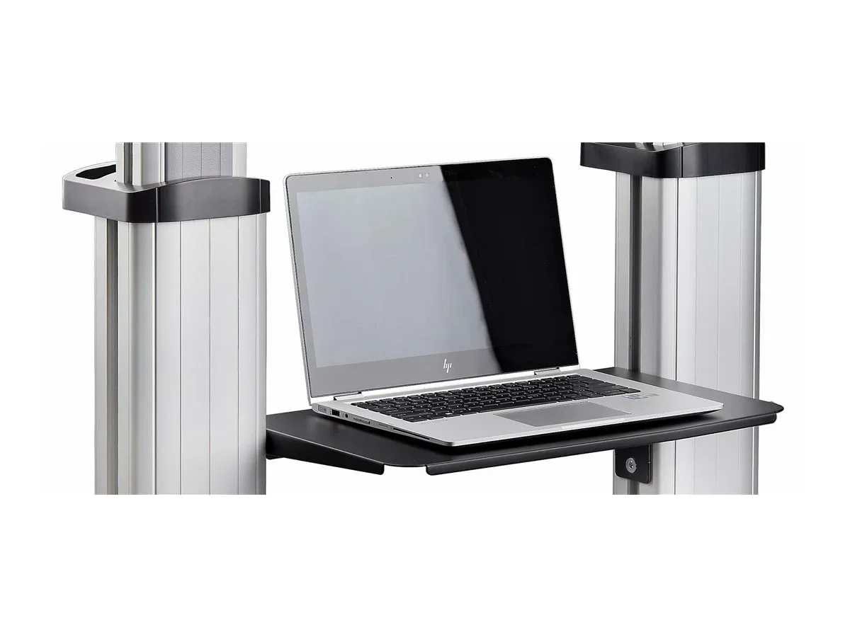 Für eine bessere Mobilität und Personalisierung verfügt dieser mobile Ständer über zwei unabhängig voneinander höhenverstellbare Medienablagen unter dem Display, die jeweils bis zu 5kg tragen können. Die Webcam-Ablage oben auf dem Display kann bis zu 2366mm vom Boden angehoben werden.