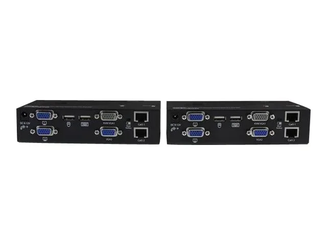 Der Dual VGA Cat5 KVM-Extender unterstützt bedienerfreundliche Schnelltasten- und Drucktastenbefehle, mit dessen Hilfe Sie zwischen lokal und remote verbundenen Systemen wechseln können, während Console-Verbindungen an beiden Enden der Konfiguration einfachen Zugriff auf alle angeschlossenen Systeme ermöglichen. Die Schnelltastenbefehle bieten auch Steuerelemente zur Videoanpassung zur Optimierung der Bildqualität über verschiedene Entfernungen. Erweiterung der Reichweite über zwei standardmäßige Cat5-Kabel (oder höhere Kabel) ermöglicht die Nutzung der vorhandenen Infrastrukturverkabelung für Fernzugriff auf Ihren Server oder KVM-Switch.