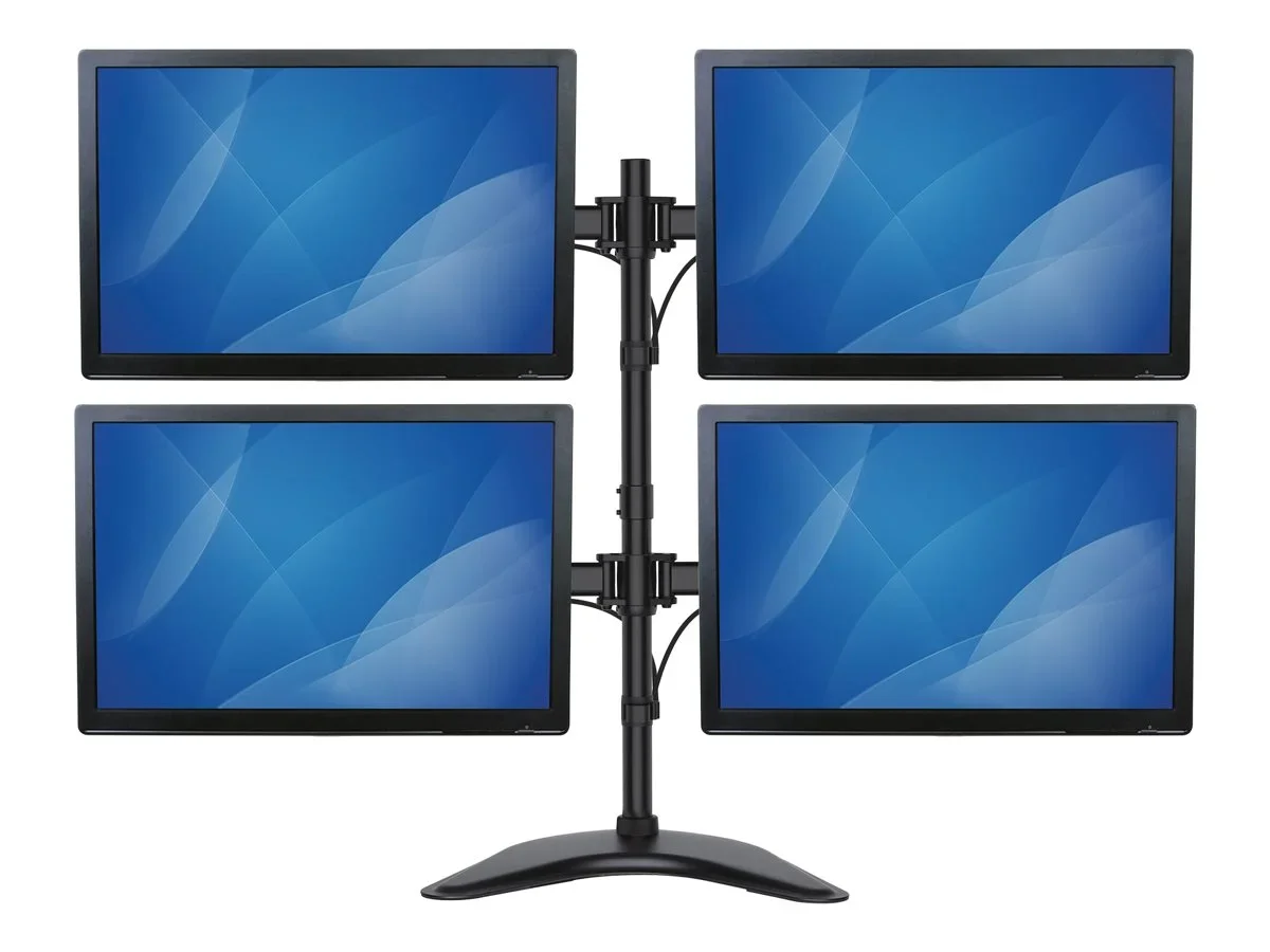 Dank seines Designs mit zwei Querstangen ermöglicht Ihnen dieser Monitorständer die Befestigung von vier Monitoren an einem einzelnen Fuß auf Ihrem Schreibtisch. Damit schaffen Sie mehr Arbeitsfläche auf Ihrem Schreibtisch für Geräte oder physische Aufgaben, wie die Überprüfung von Dokumenten in Papierform. Zudem erhalten Sie durch das Hinzufügen zusätzlicher Monitore reichlich Bildschirmfläche für vereinfachtes Multitasking - die Verwendung von vier Bildschirmen erleichtert die Platzierung von Referenzmaterial auf mehreren Bildschirmen, während Sie auf einem anderen arbeiten. Dies erspart Ihnen Zeit und Mühe, da Sie nicht zwischen den Dokumenten hin- und herspringen müssen.