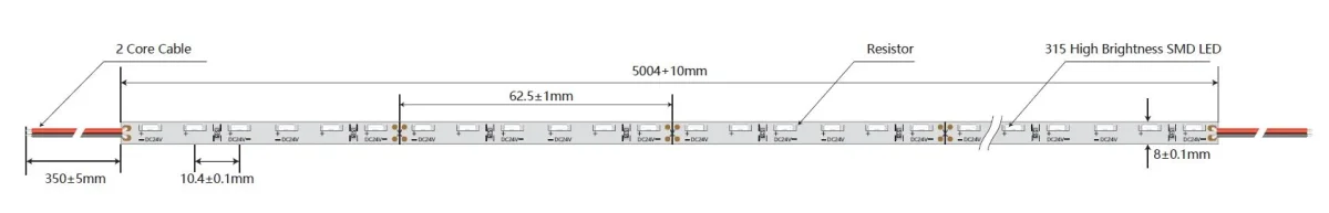 Synergy 21 LED Flex Strip 4020 - 60 WW DC24V 38W IP20 CRI>90 sideview