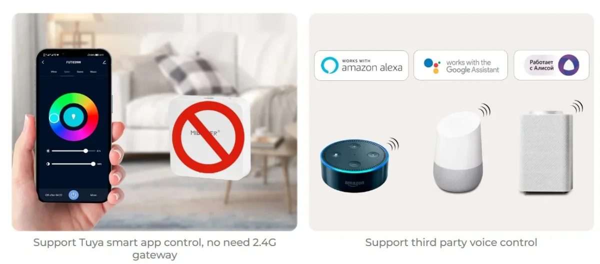 PLCW1 PLC Lighting Master (WiFi+2.4G) ·designed by PLC control solution, simple wiring diagram ·TUYA SMART APP remote control to dim brightness, create scenes, timer, music rhythm, biological rhythm, sleeping mode…etc Features Designed by PLC control solution, simple wiring diagram and work with wifi+2.4G wireless technology to achieve smart control. TUYA SMART APP remote control to dim brightness, create scenes, timer, music rhythm, biological rhythm, sleeping mode…etc, support 2.4G remote control as well. Parameters 16 million colors for selection, dimmable for rgb &cct& brightness One controller max paired with 12pcs 2.4G RF remote ( control distance 30m) Built-in 18 dynamic mode with jumping, gradually changing ( only for 2.4G remote control) Auto-forwarding: Automatically forward the remote control signal to another controller, making the remote control distance infinite Automatic synchronization: The same dynamic mode is automatically synchronized, so that the mode is always consistent Have DND function, usually used in power failure area and save power Support TUYA SMART app control (2.4GHz gateway is needed) Support third party voice control like Alexa, Google assistant, Yandex Alice, Tmall Genie, Baidu and Xiaomi (2.4GHz gateway is needed) Product Name: PLC Lighting Master (WiFi+2.4G) Model No.: PLCW1 Input Voltage: DC24V Total Output: Max 20A Protocol: WiFi+2.4GHz Control Distance: 30M IP Rate: IP20 Working Temperature: -10~40°C WIFI Standard: IEEE 802.11b/g/n 2.4GHz EMC Standard (EMC): ETSI EN301 489-1 v 2.2.3 (2019-11) ETSI EN301 489-3v 2.3.2 (2023-01) Safety Standard (LVD): EN 61347-1:2015+A1: 2021 EN 61347-2-11: 2001+A1:2019 Radio Equipment (RED): ETSI EN 300 440 V2.2.1 Certification: CE, EMC, RED
