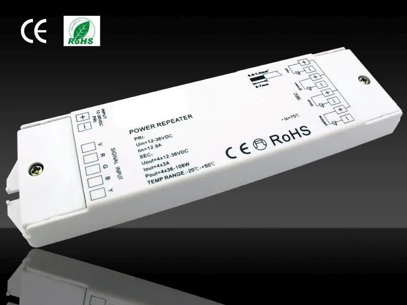 4 Kanal (RGB-W) Verstärker/Repeater input: 12-36VDC output: 4x5A size: 46x178x18 passen auch für EOS 02, EOS 03, EOS 04, EOS 06, EOS 07, EOS 08, und EOS 09