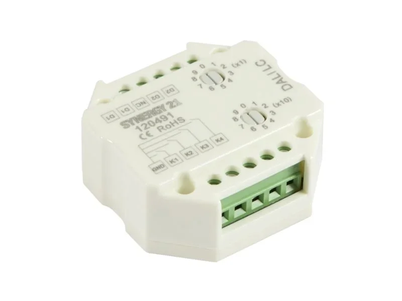 DALI Unterputz Wandtaster für 4 Lampen mit 4 Tasteingängen DALI BUS powered Maße: 52x52x23mm Betriebtemperatur: -10°C - +50°C Schutzklasse: IP20 DALI (Digital Addressable Lighting Interface)