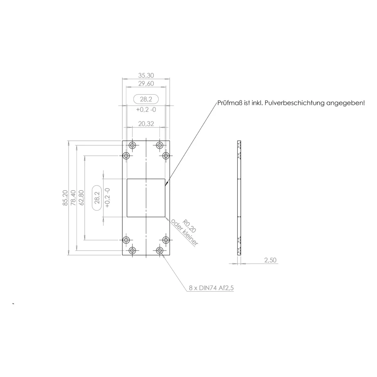 | Oberfläche | RAL7016 Feinstrukturpulver, vorne, abgeklebt/blank, hinten |