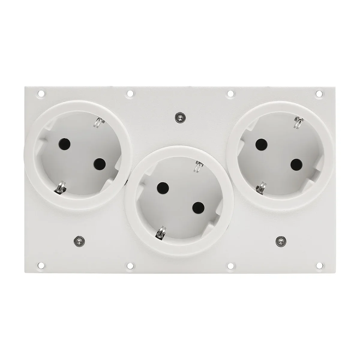 | Ausführung | 3 x Snap-In Schuko-Buchse schwarz, Rückseitig mit WIELAND gesisCON GST18i3 │Einbaustecker + -buchse, berührungsgeschützt |