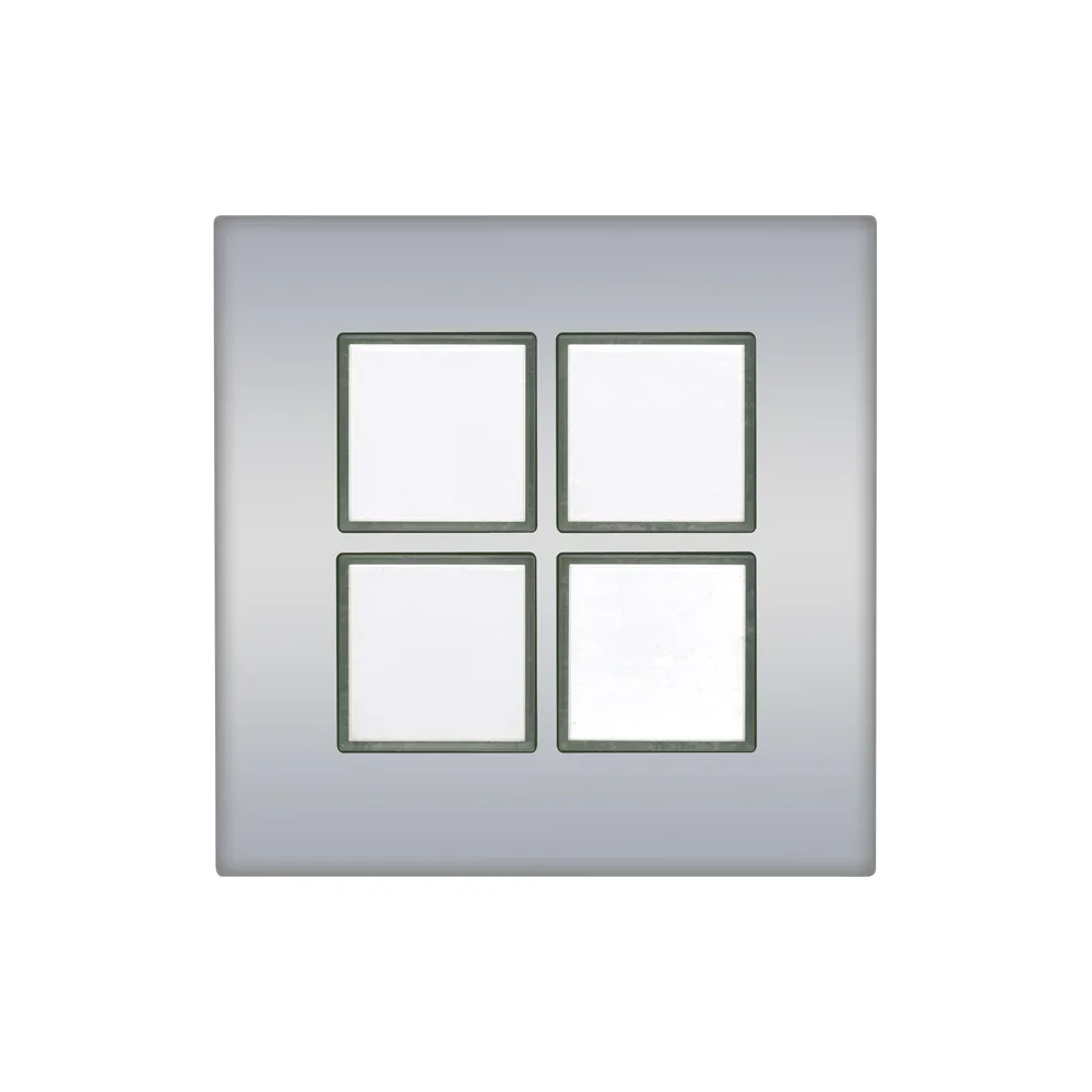 SYSWALL45 4f.Tastermodul, silber,-4 potentialfreie Taster 14x14mm-LED-Beleuchtung weiß 5-36V-inkl. 4x4pol Anschlussblock in Aufzug- klemmtechnik-inkl. konvex geformten Klarglaskappen-inkl. Beschriftungssymbole---------------------------------Platte: 45x4…