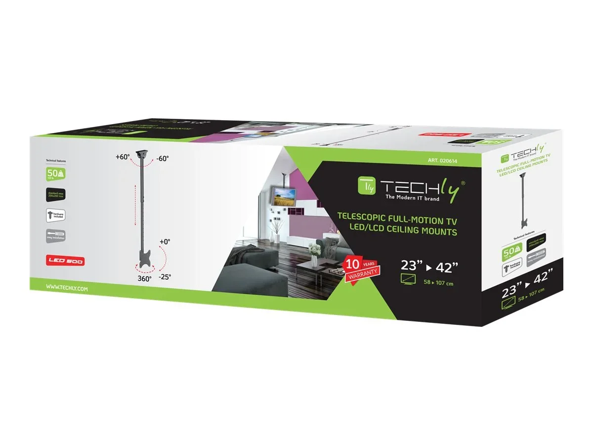 TECHly - Klammer - für LCD-Display - Stahl - Schwarz - Bildschirmgröße: 58.4-106.7 cm (23"-42") - Deckenmontage