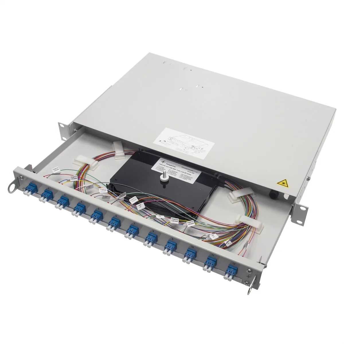 TELEGÄRTNER 19" LWL-RANGIERVERT.PROFI V 1HE, 12xLCD türkis+24xPigt.50 OM3, eingefärbt