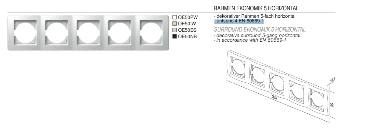 RAHMEN EKONOMIK 5 HORIZONTAL - dekorativer Rahmen 5-fach horizontal - entspricht EN 60669-1