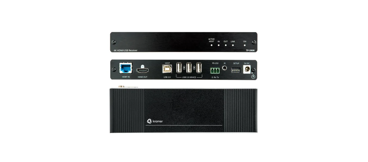 - Hochleistungs–Signalverlängerung — Professioneller HDBaseT–Empfänger für die Zurverfügungstellung von Signalen mit langer Reichweite über CAT–Kabel. TP–590R ist ein Signalempfänger, der mit jedem auf dem Markt befindlichen HDBaseT–Produkt verbunden werden kann. Optimale Reichweite und Leistung nur bei Verwendung der empfohlenen Kramer–Kabel.