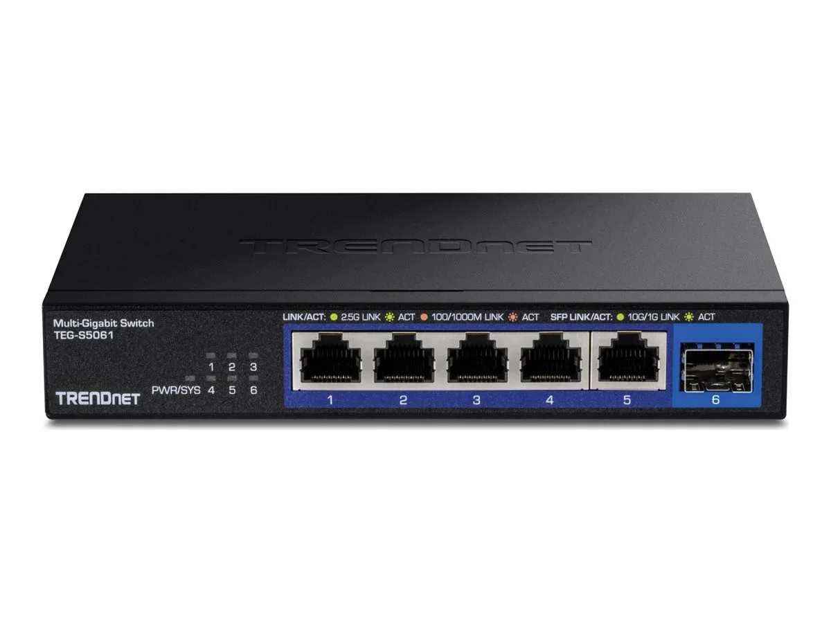 Der TRENDnet TEG-S5061 ist ein vielseitiger 2,5-Gigabit-Ethernet-Switch, der mit seinen Funktionen die Netzwerkleistung verbessert. Mit fünf 1/2,5G-Ports und einem 1/10Gbit-LAN-Anschluss unterstützt dieser Switch verschiedene Netzwerkstandards, darunter IEEE 802.3z und IEEE 802.3ab, und gewährleistet so die Kompatibilität mit einer Vielzahl von Geräten und Anwendungen. Das Gerät arbeitet effizient in Umgebungen mit Temperaturen von 0 °C bis 40 °C und kann Luftfeuchtigkeitswerte zwischen 0 % und 90 % aushalten, wodurch es für verschiedene Umgebungen geeignet ist.