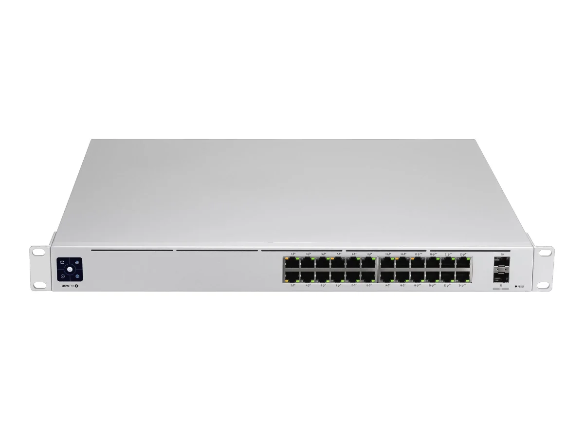 Der Switch Pro 24 PoE (USW Pro 24 PoE) ist ein vollständig verwalteter Switch mit (16) GbE, 802.3at PoE+ RJ45-Ports, (8) GbE, 802.3bt PoE++ RJ45-Ports und (2) 10G SFP+-Ports. Der USW Pro 24 PoE kombiniert eine Vielzahl von Layer-2-Funktionen mit fortschrittlichen Layer-3-Tools wie Inter-VLAN-Routing, statisches Routing und einen DHCP-Server. Der USW Pro 24 PoE ist der ideale Access Layer Switch für jedes UniFi-System. Er kombiniert bis zu 400 W PoE-Leistung mit SmartPower RPS (USP RPS) Stromredundanz. Der Switch kann außerdem von überall aus mit der leistungsstarken, intuitiven UniFi Network Webanwendung und der mobilen App überwacht und konfiguriert werden.