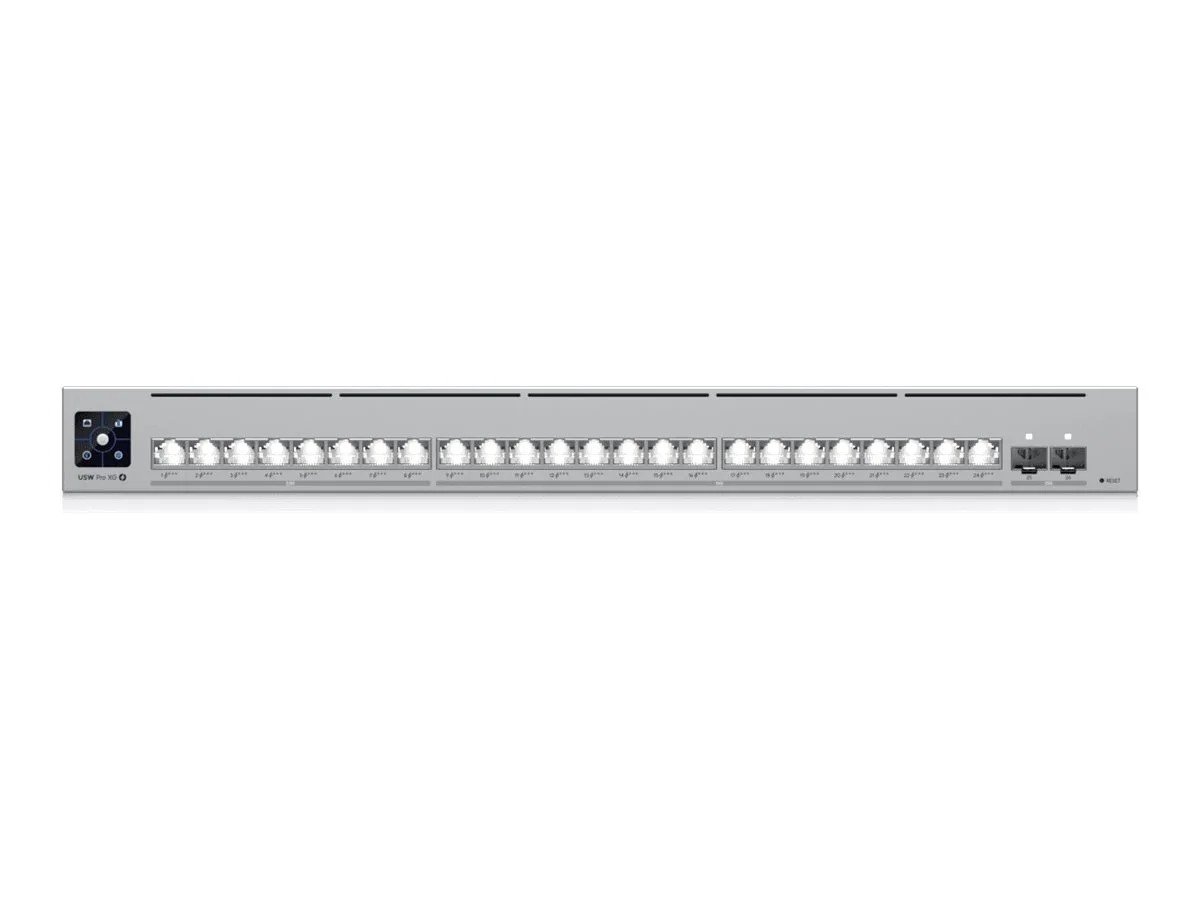 Der Ubiquiti UniFi Switch Pro XG 24 PoE wurde entwickelt, um leistungsstarke Konnektivität mit robusten Funktionen für vielseitige Netzwerkanforderungen zu bieten. Dieser Switch bietet eine Kapazität für 1.000 IPv4-Routen, 128.000 ARP-Einträge und unterstützt bis zu 256 VLANs, wodurch er für eine Vielzahl von Anwendungen geeignet ist. Ausgestattet mit einem 1,3-Zoll-Touchscreen-Display bietet er intuitive Verwaltungs- und Überwachungsfunktionen und gewährleistet so eine einfache Bedienung für Netzwerkadministratoren.
