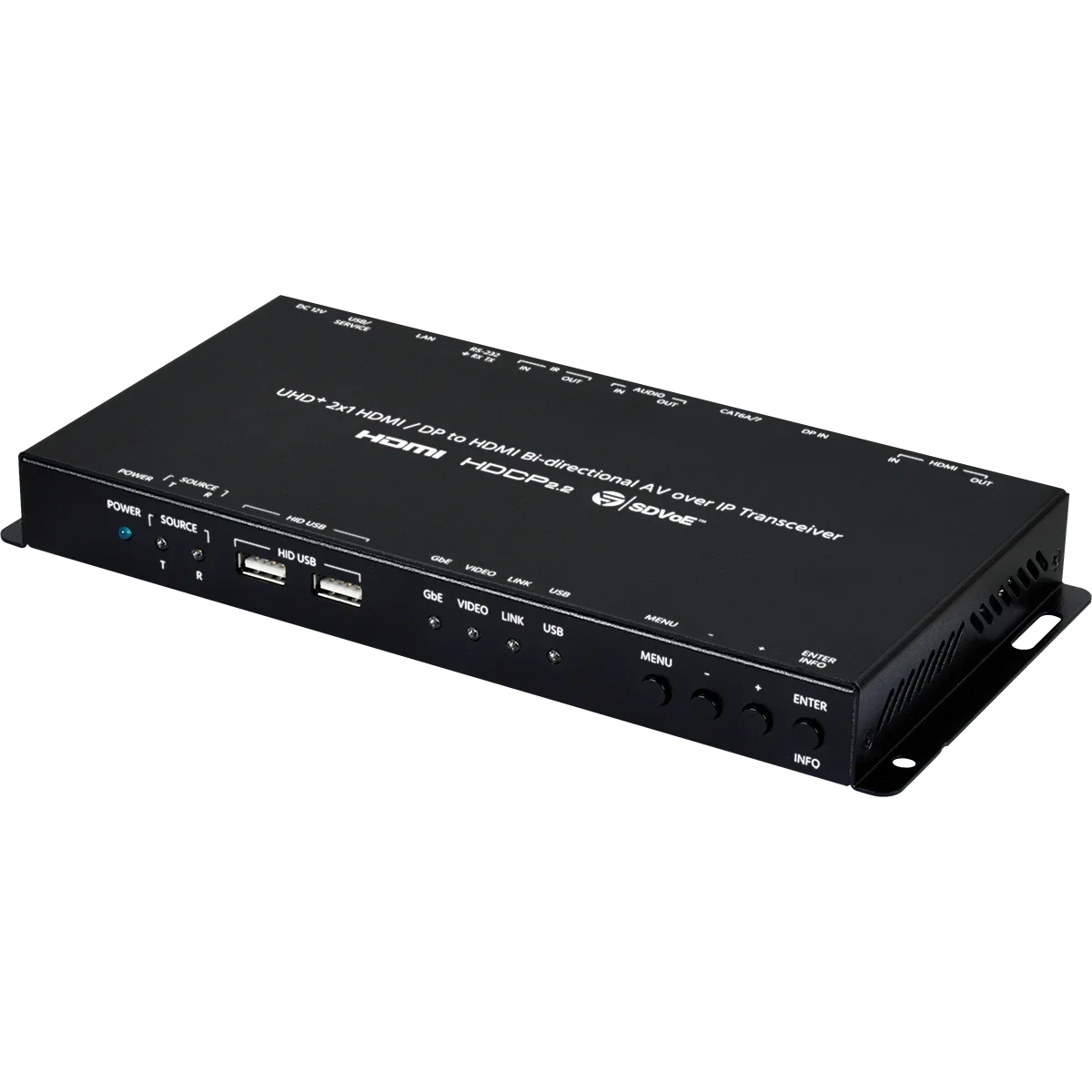 UHD+ 2x1 HDMI/DP to HDMI Bi-directional AV over IP Transceiver W/HID USB |
