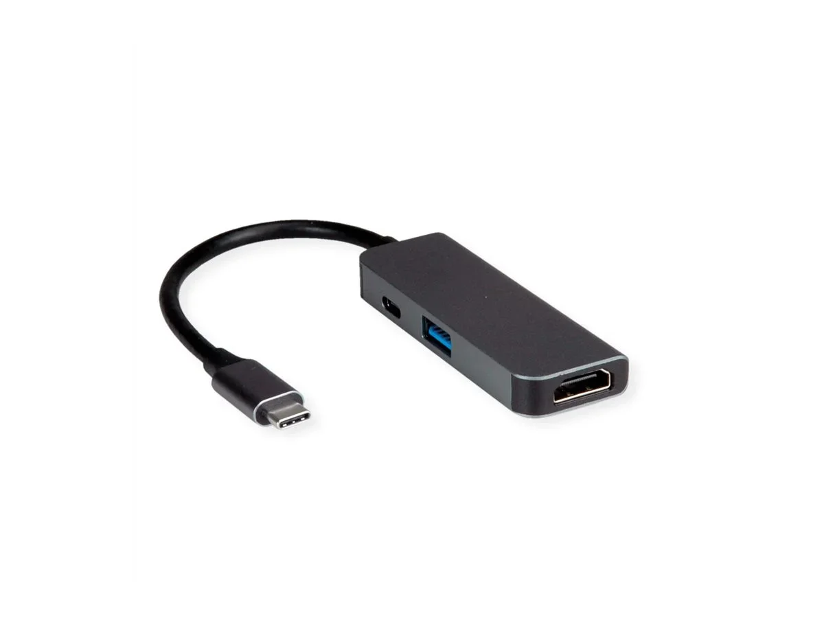 Verbinden Sie Ihr Macbook, Ultrabook, Notebook/Laptop oder PC mit USB Typ C Schnittstelle mit einem HDMI-Display oder Projektor - mit einer maximalen Auflösung von bis zu 3840x2160 @60Hz! Laden Sie Ihr Gerät gleichzeitig über PD (Power Delivery) auf und schließen Sie eine zusätzliche Peripherie oder ein anderes Gerät wie eine SSD an den zusätzlichen USB Typ A Port an. USB 3.1 / USB 3.2 Gen 2 Typ C auf HDMI Kabeladapter für MacBook, Ultrabook, Notebook/Laptop oder PC Spiegeln oder erweitern Sie die Anzeige Ihres Geräts auf einen beliebigen HDMI-Monitor oder Projektor. Maximale Auflösung: 3840x2160 bei 60Hz Keine zusätzliche Stromversorgung erforderlich USB Typ C PD: Power Delivery Funktion zum Laden von Geräten über den zusätzlichen Typ C Anschluss Anschlüsse: HDMI Buchse und Typ C Stecker; zusätzlich 1x USB 3.0 / USB 3.2 Gen 1 Typ A und 1x USB Typ C PD Kabellänge: ca. 12 cm.