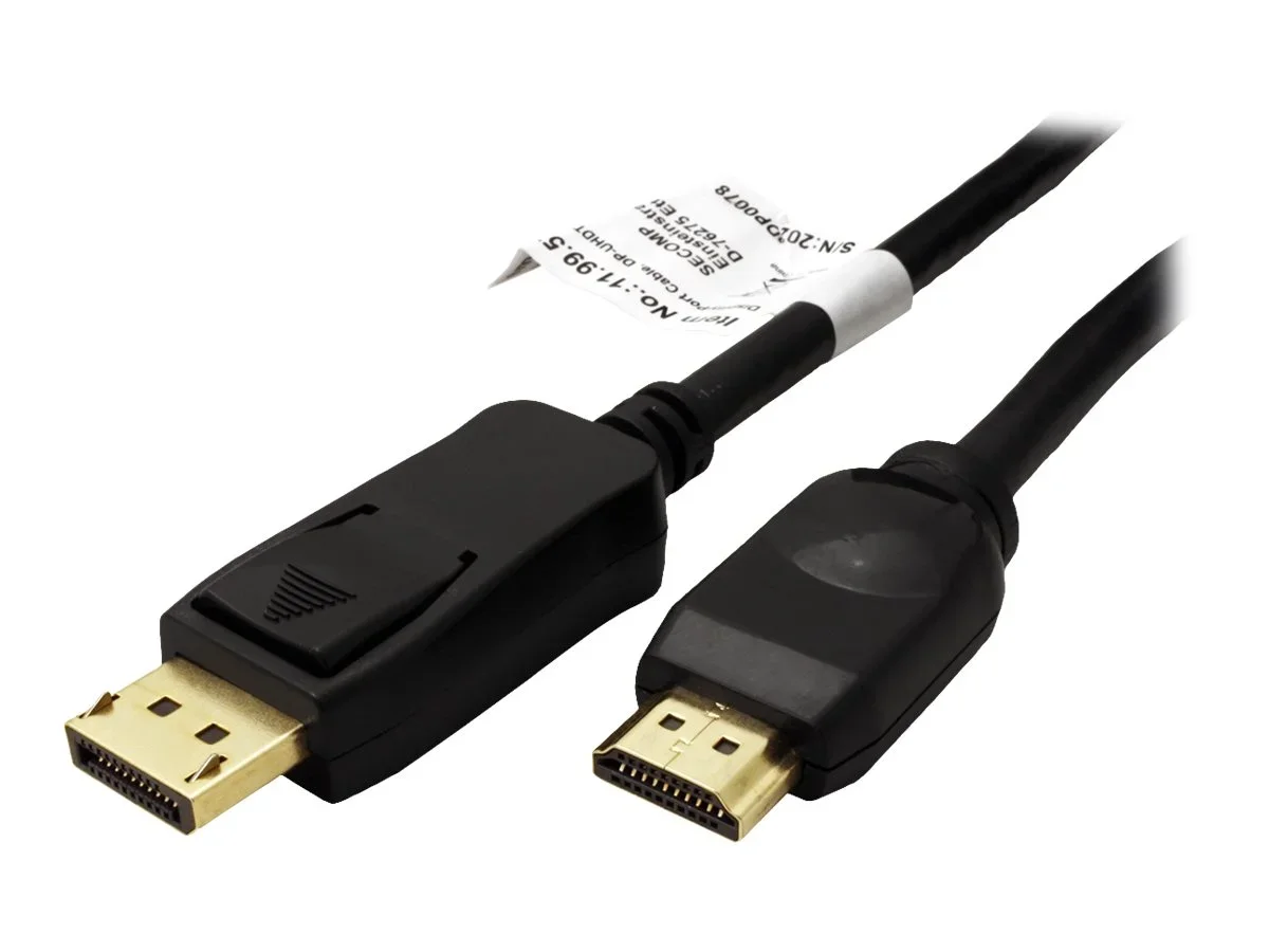 DisplayPort nach UHDTV Kabel zum Übertragen von Inhalten von beispielsweise Ihrer Grafikkarte (DisplayPort) auf Ihren TV (UHDTV) - mit einer Qualität von bis zu 3840x2160 @60Hz, inkl. Audio-Übertragung! UHDTV ist der Standard für die digitale Video-Übertragung im TV-/Multimedia-Bereich für z.B.: Anbindung eines TV-Gerätes mit HDMI-Schnittstelle an ein Abspielgerät mit DisplayPort-Anschluss. Kabel mit einem DisplayPort- und einem HDTV-Stecker. DisplayPort ist signalkompatibel zu HDMI. Hinweis: Ein DisplayPort-UHDTV-Kabel ist nur in einer Richtung verwendbar: der DisplayPort-Stecker ist nur auf der Datenquellenseite verwendbar(z.B. Grafikkarte).