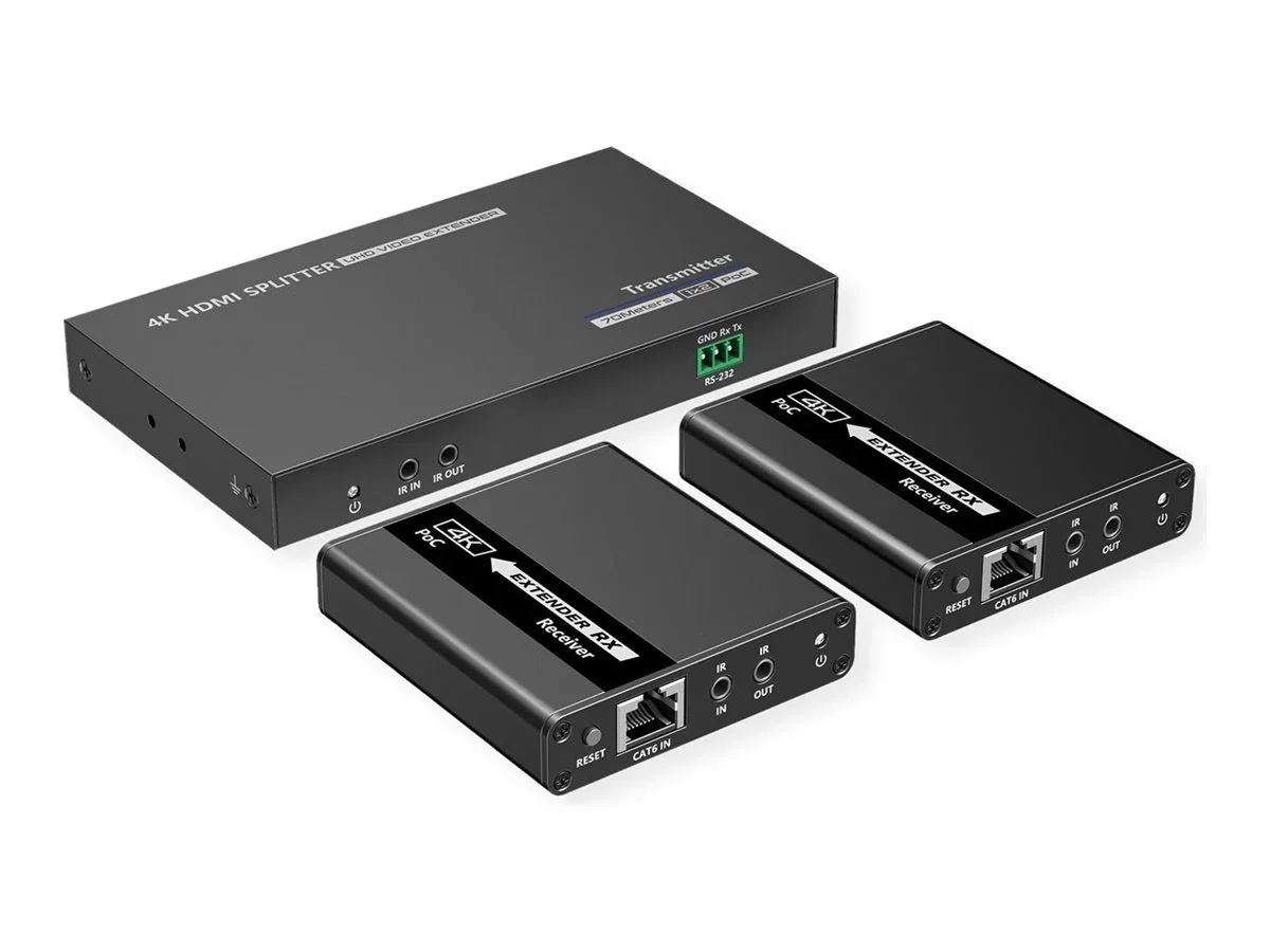 Das Secomp VALUE-Kit umfasst einen Sender und zwei Empfänger und bietet zuverlässige Video- und Audioerweiterungsfunktionen für jede Umgebung. Mit Unterstützung für 4K-Auflösung und einer maximalen Videobandbreite von 10,2 Gbit/s gewährleistet dieses Kit beeindruckende Bildschärfe und Detailtreue bis zu einer Entfernung von 40 m. Sein Metallgehäuse sorgt für Langlebigkeit, während die bidirektionale IR-Funktion die Benutzerfreundlichkeit verbessert, da sie die Fernsteuerung von beiden Enden der Anlage aus ermöglicht. Diese vielseitige Lösung funktioniert in einem breiten Temperaturbereich von -20 °C bis 60 °C und eignet sich daher für verschiedene Umgebungen. Die HDMI-Eingangs- und Audio-Ausgangsanschlüsse ermöglichen eine nahtlose Integration mit vorhandenen Geräten, während Funktionen wie Power over Cable und die Unterstützung mehrerer Audioformate, darunter DTS und LPCM, die Gesamtfunktionalität verbessern. Die praktische kabelgebundene Verbindungsoption gewährleistet eine stabile Leistung und macht dieses Produkt zur ersten Wahl für die Video- und Audioübertragung sowohl in privaten als auch in gewerblichen Anwendungen.
